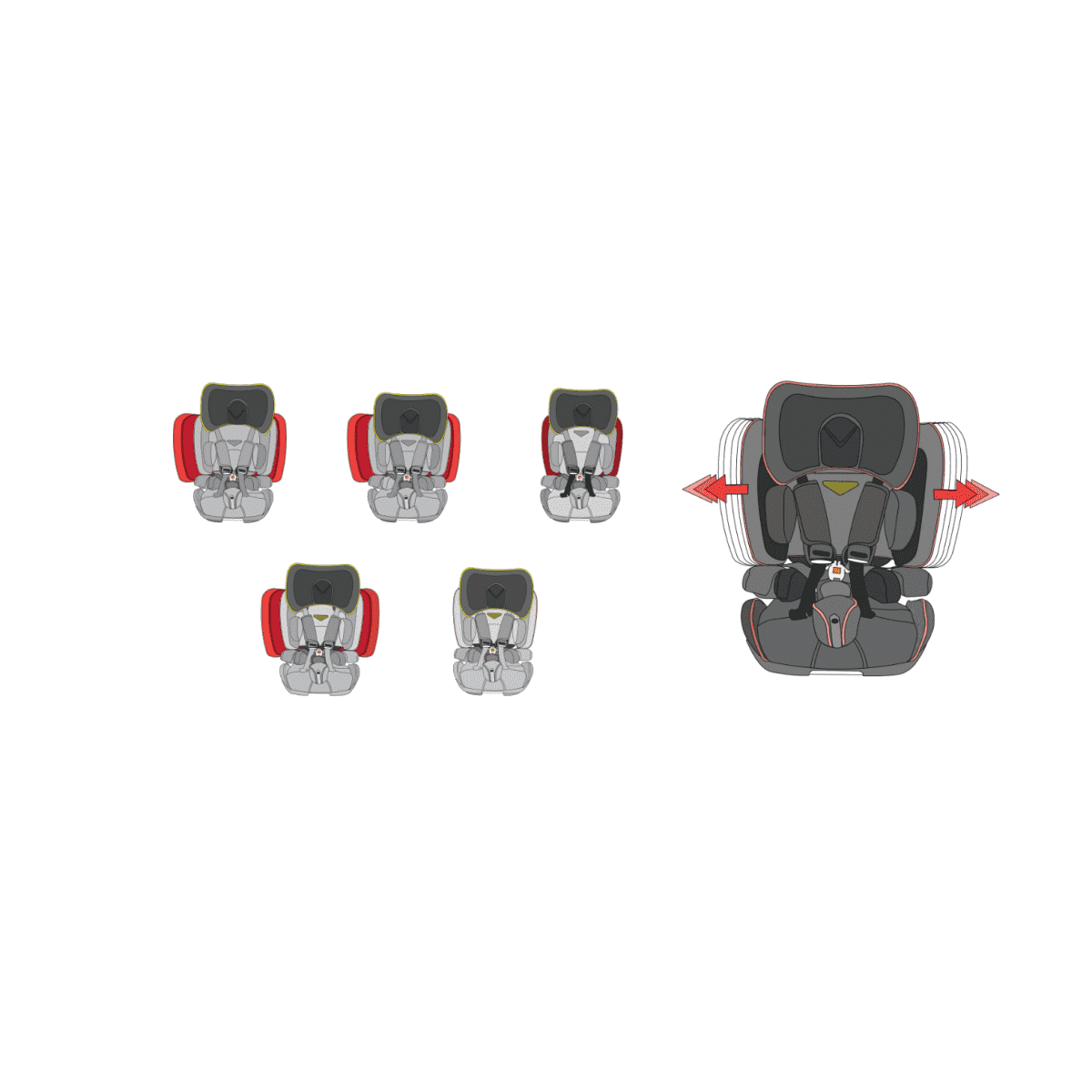 Четыре уровня асинхронно регулируемых боковых крыльев и отдельно настраиваемый подголовник позволяют адаптировать кресло под индивидуальные потребности ребёнка. Такая конструкция обеспечивает правильную поддержку и удобную посадку даже при длительных поездках.