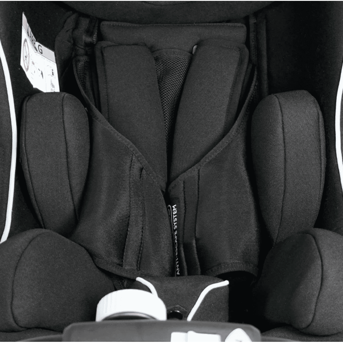 Положение лицом назад помогает снизить нагрузку на позвоночник, когда голова выбрасывается вперёд при торможении. Технология поглощения силы в подголовнике защищает чувствительную голову и шею ребёнка в случае удара.