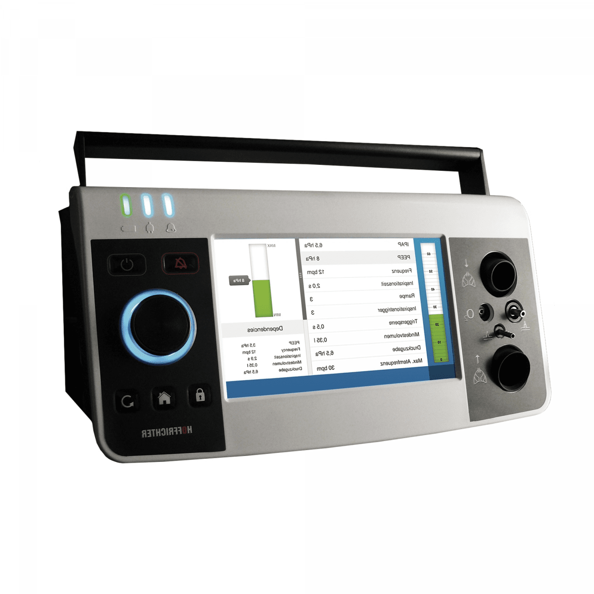 Hoffrichter Carat I Pro (Хоффрихтер Карат 1 Про) — профессиональный аппарат для инвазивной и неинвазивной вентиляции лёгких, созданный для стабильной, долгосрочной респираторной поддержки пациентов любого возраста. Он сочетает высокую надёжность, продуманную эргономику и набор ключевых режимов вентиляции, необходимых в повседневной клинической практике и домашней терапии.