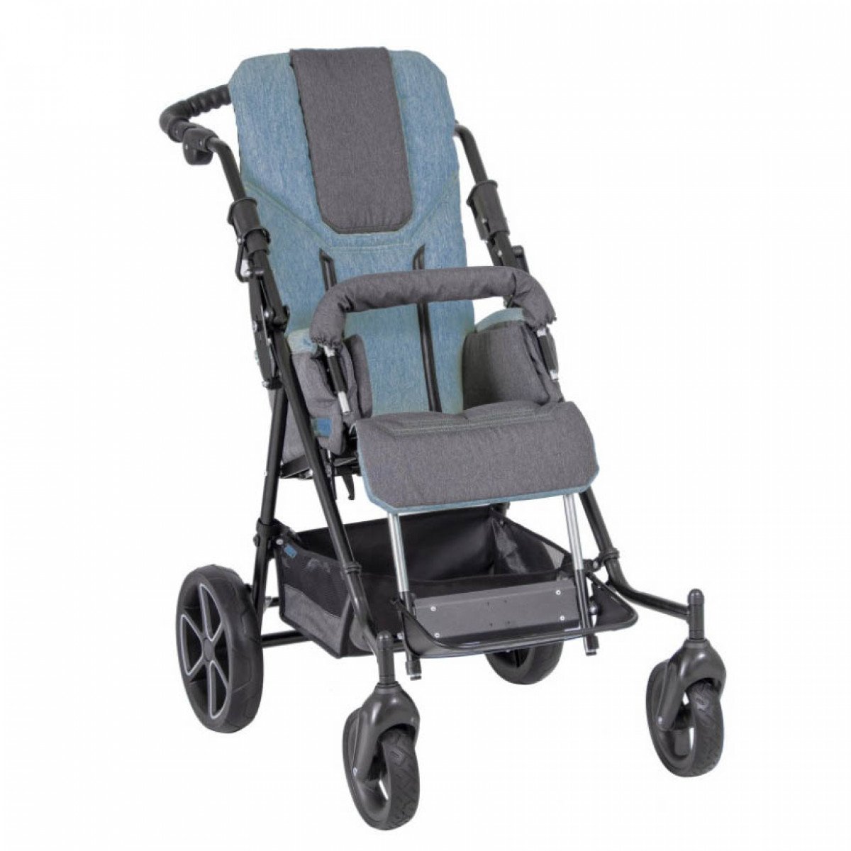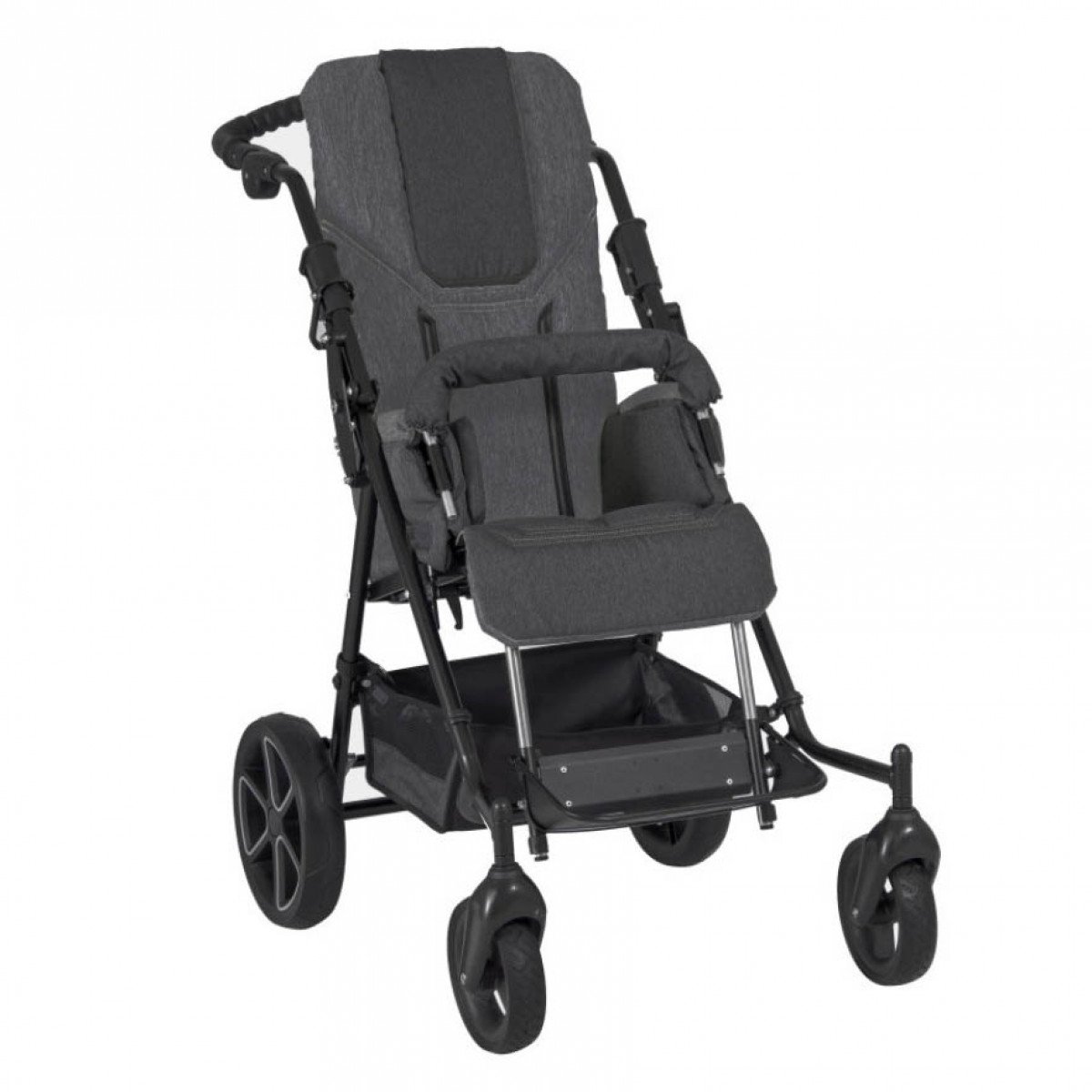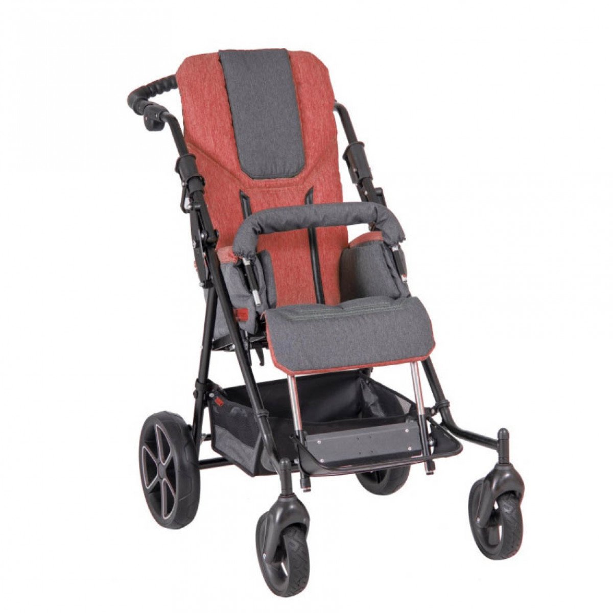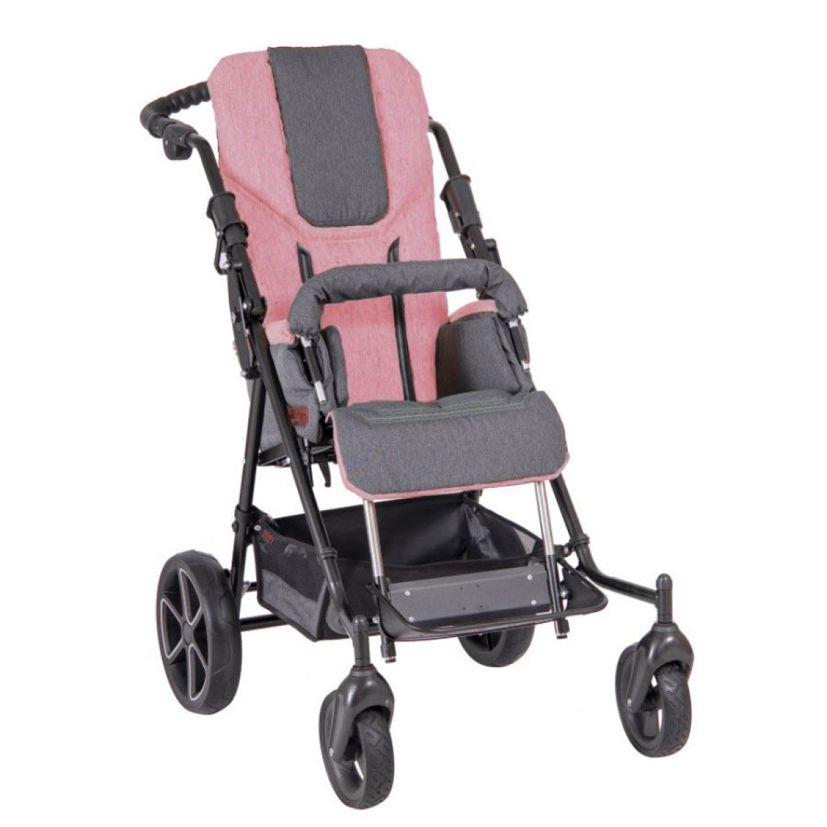 Коляска оборудована передними и задними колёсами, созданными с защитой от проколов. Колёса выполнены из литых материалов, но в случае необходимости, их можно заменить на пневматические. Более того, для достижения максимального комфорта, возможно оснащение коляски передними колёсами увеличенного диаметра, что позволяет упростить передвижение по сложным или неровным поверхностям.