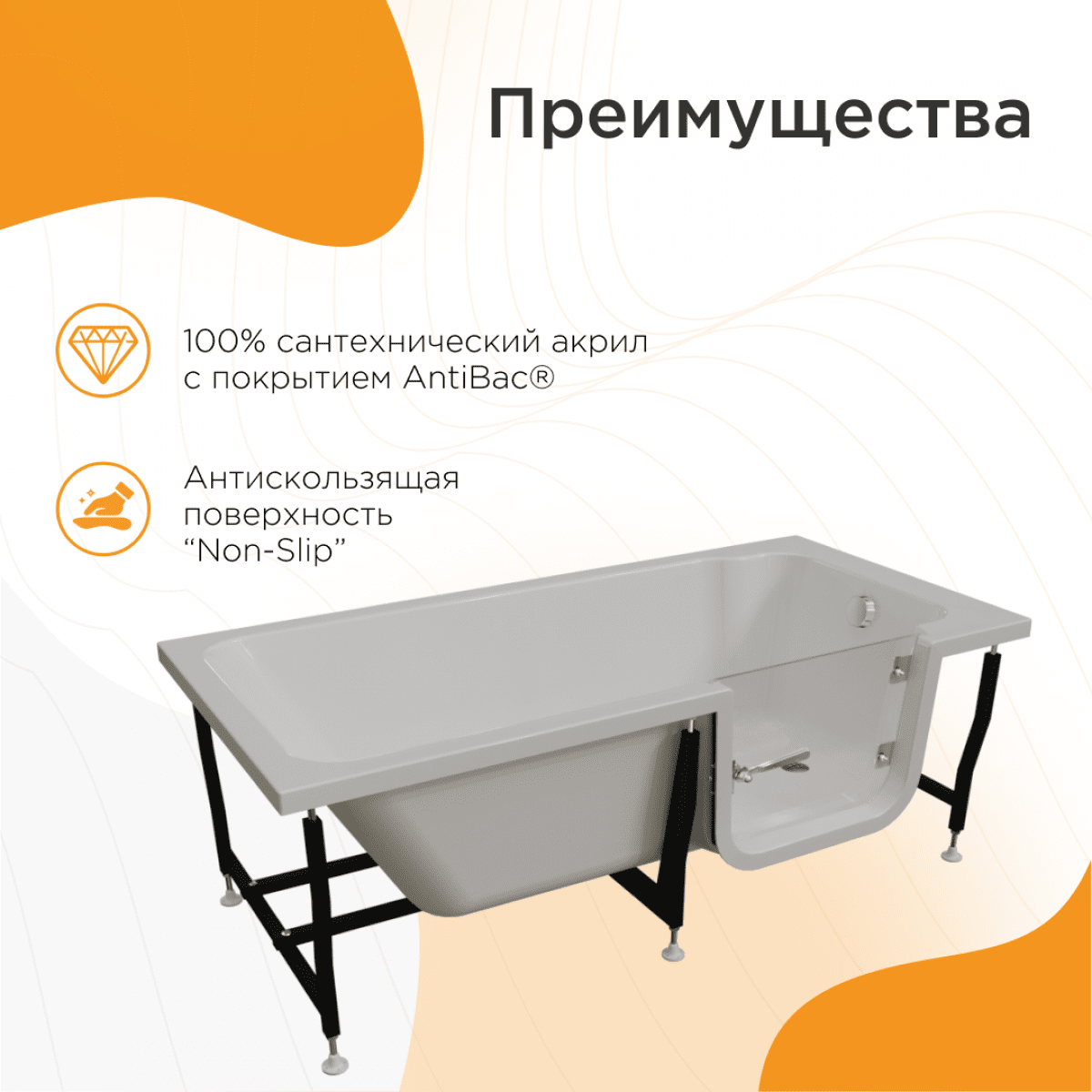 Медицинская ванна Radomir (Радомир) Грасс 2 — это инновационное решение, созданное для безопасного и комфортного купания. Её ключевая особенность — удобная боковая дверца, которая устраняет главное препятствие — высокий борт, позволяя пользователю легко заходить и выходить без усилий и риска.