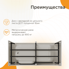 • Металлическая рама гарантирует устойчивость при нагрузке до 900 кг