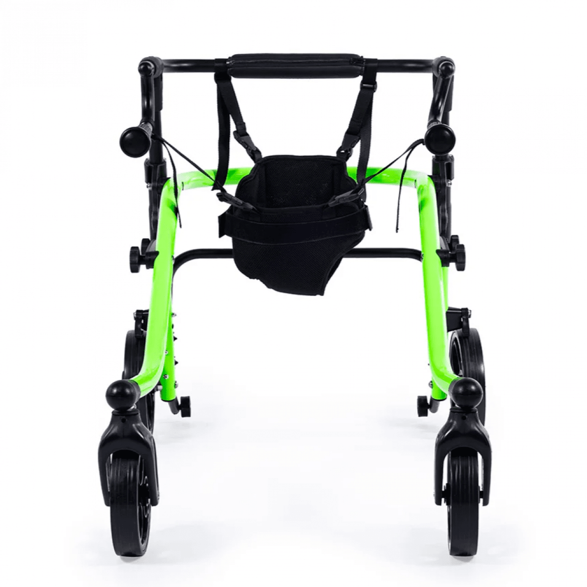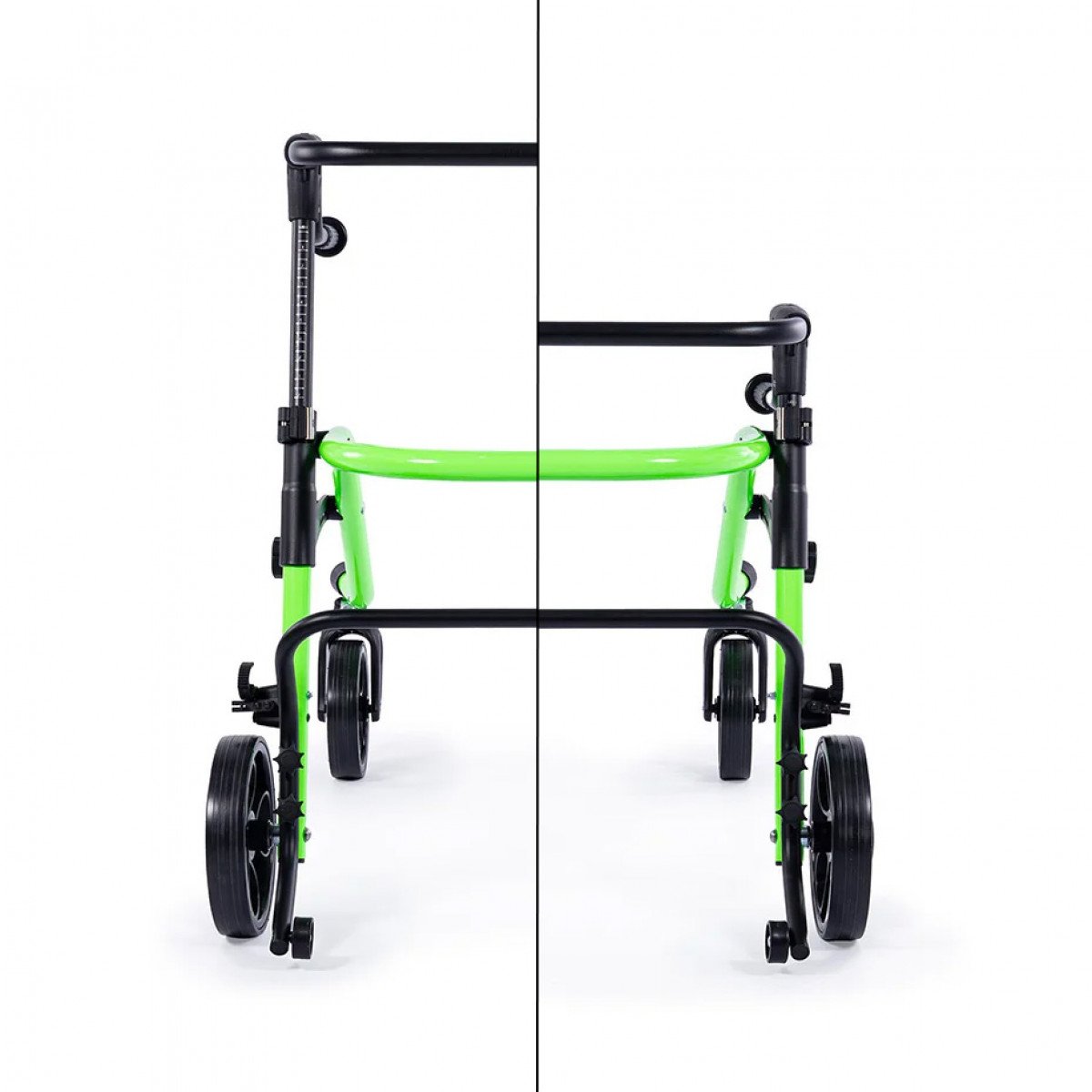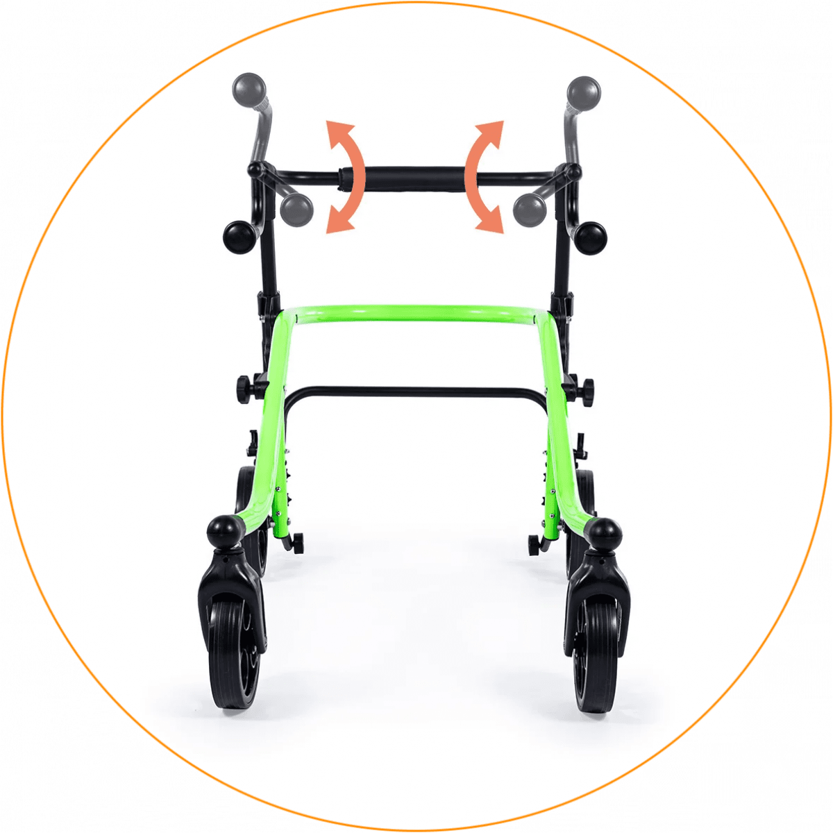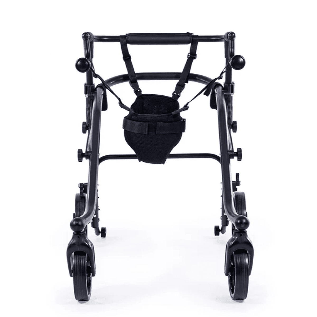 Продуманная колёсная система помогает контролировать движение. Передние колёса фиксируются по направлению, помогая ребёнку двигаться увереннее и спокойнее. Задние колёса оснащены регулируемым замедлителем — скорость движения можно настроить под возможности пользователя. Дополнительная защита от отката назад повышает безопасность и даёт ощущение надёжности во время занятий.