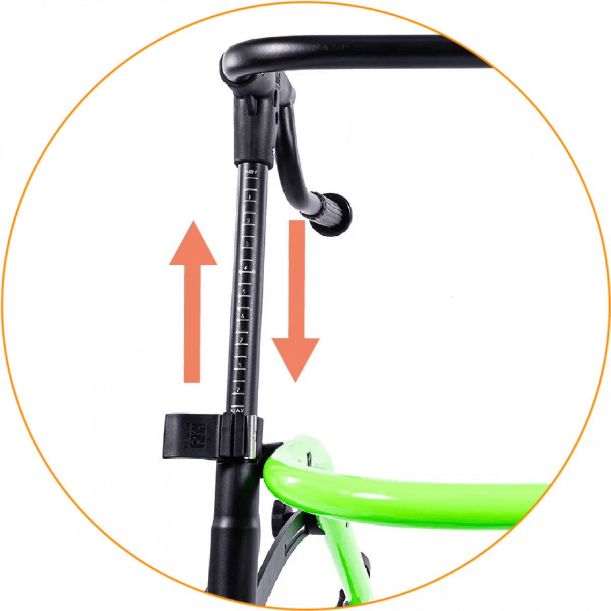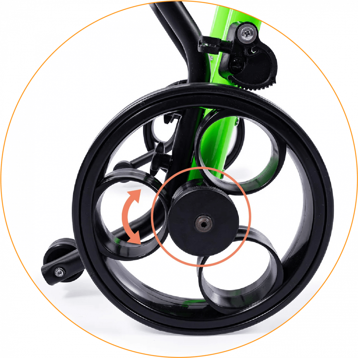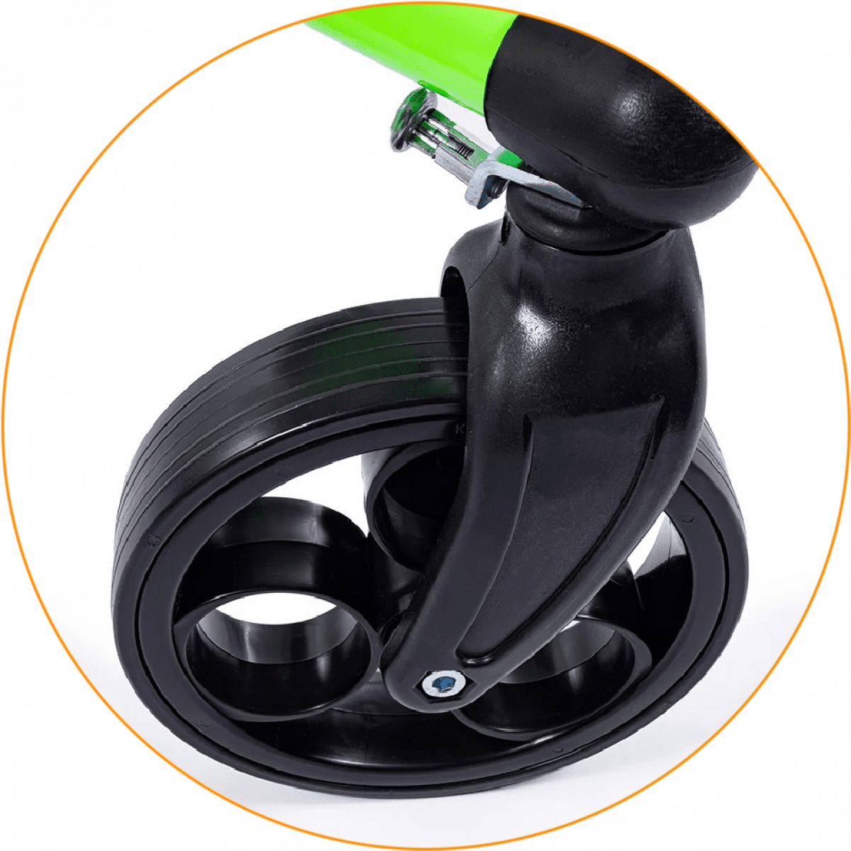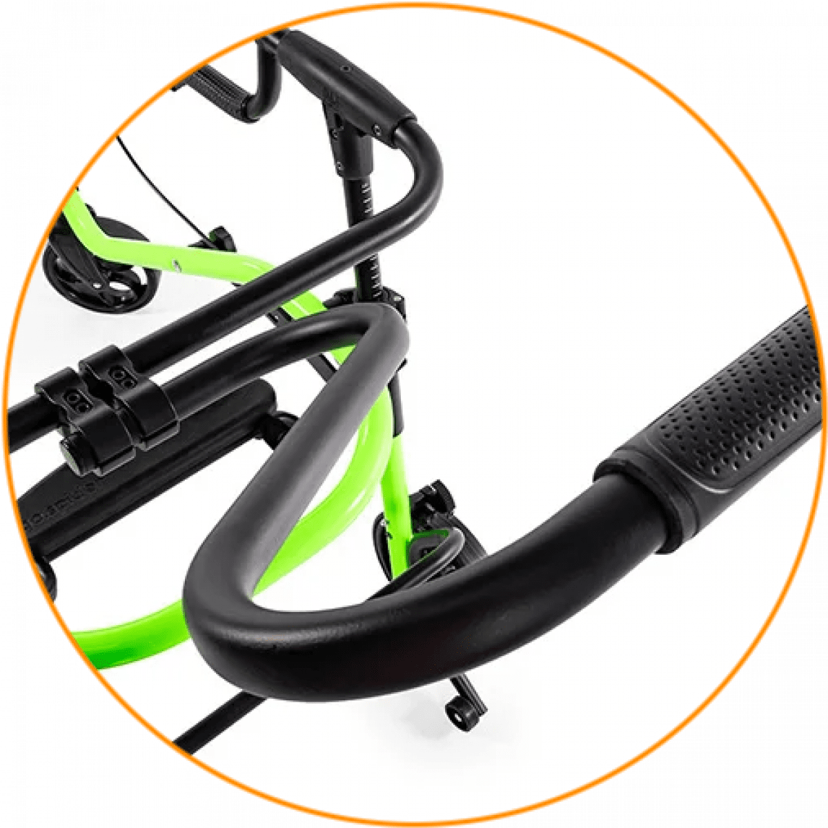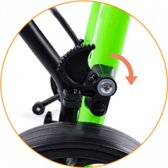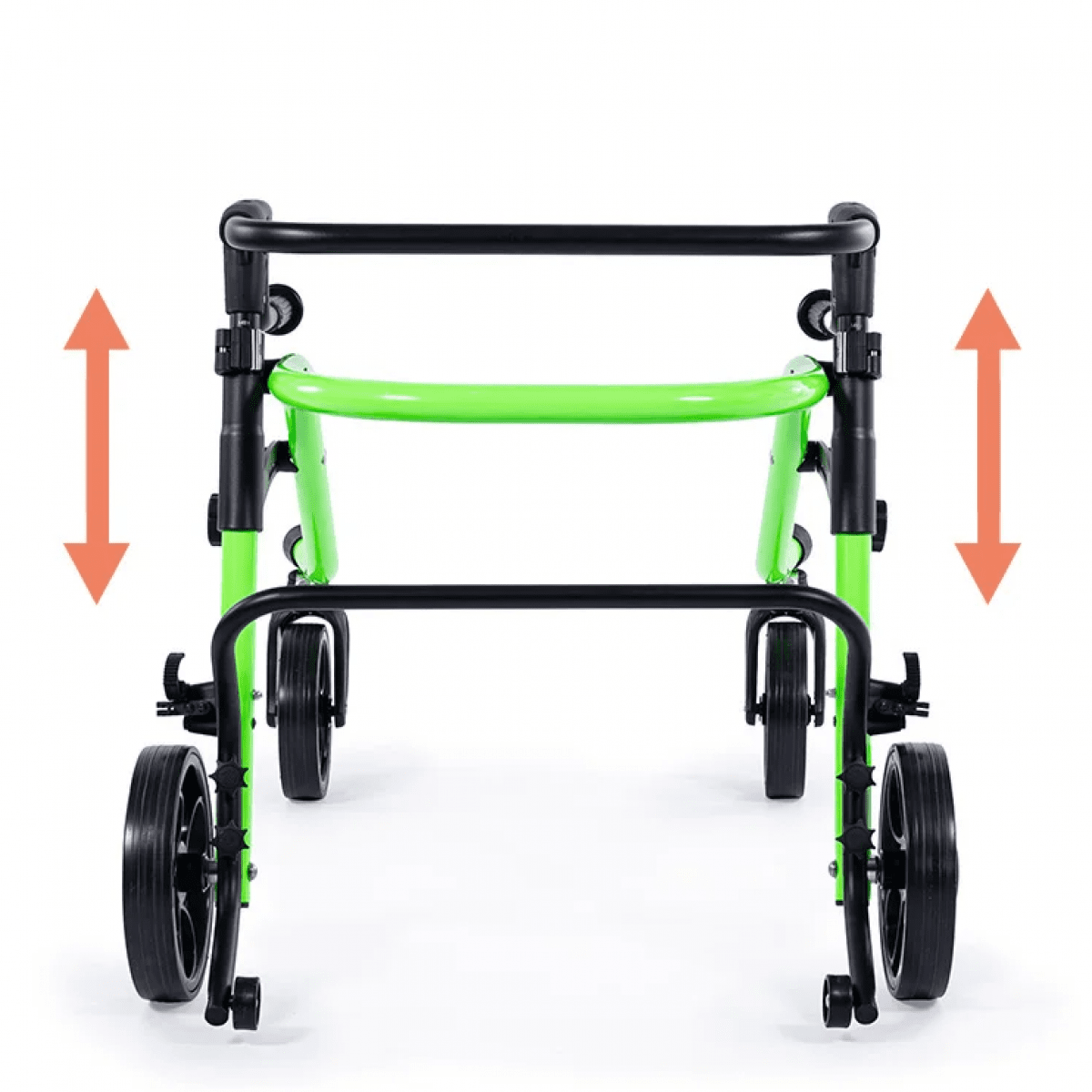 Продуманная колёсная система помогает контролировать движение. Передние колёса фиксируются по направлению, помогая ребёнку двигаться увереннее и спокойнее. Задние колёса оснащены регулируемым замедлителем — скорость движения можно настроить под возможности пользователя. Дополнительная защита от отката назад повышает безопасность и даёт ощущение надёжности во время занятий.
