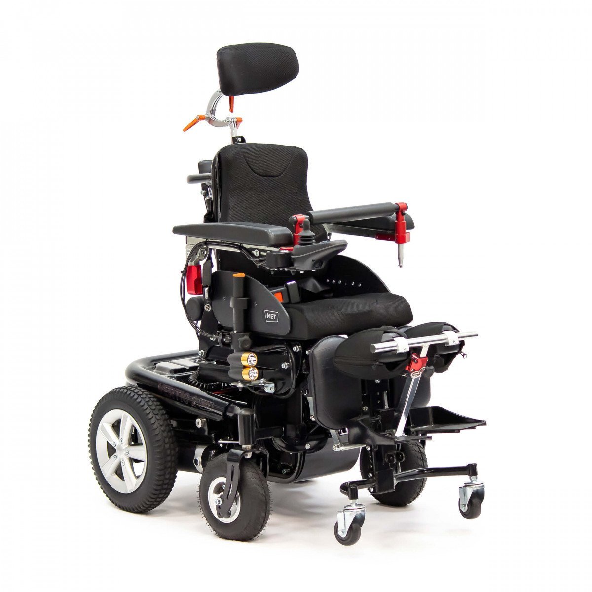 Запас хода до 25 км и мощные двигатели делают Met Vertic 2 Mini надежным спутником на прогулках и поездках. Дополнительные элементы комфорта — откидные подлокотники, регулируемая спинка и подголовник, а также встроенные световые приборы для безопасного передвижения в темное время суток.