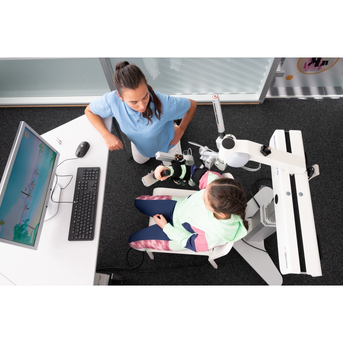 Программное обеспечение ArmeoSpring точно фиксирует движения руки, помогает оценивать прогресс и выявлять остаточные функции. Доступно более 25 упражнений с настраиваемым уровнем сложности, индивидуальный диапазон движений и персональный план терапии. Комплекс подходит для занятий прямо в инвалидной коляске, рабочее пространство регулируется под правую и левую руку, обеспечивая безопасность и комфорт во время тренировок.