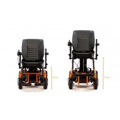 Электрическая кресло-коляска с лифтом Met Nova (Мет Нова) предлагает уникальную возможность поднимать сиденье вместе с пользователем с помощью электроактуатора. Она выполнена в строгом и элегантном классическом дизайне, отличается продуманной конструкцией и надежной функциональностью электрического оборудования. Рама кресла окрашена в яркий оранжевый цвет.