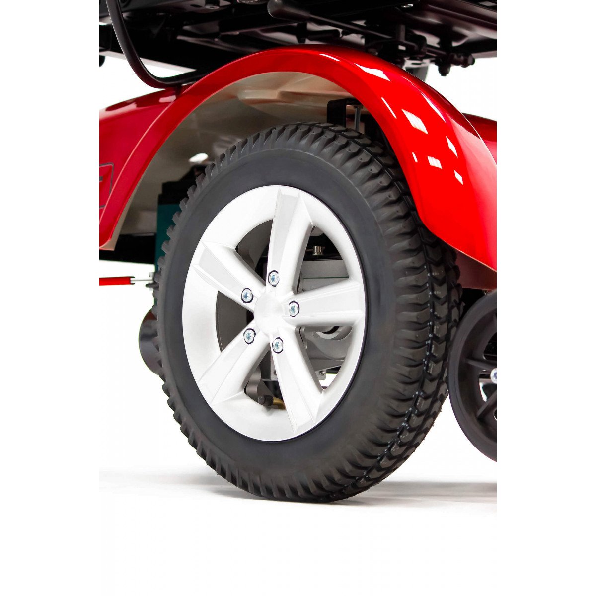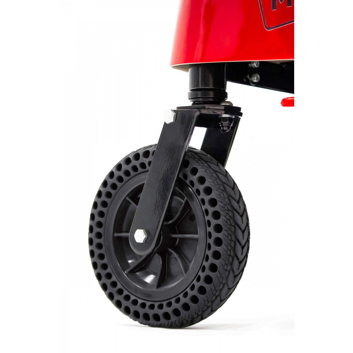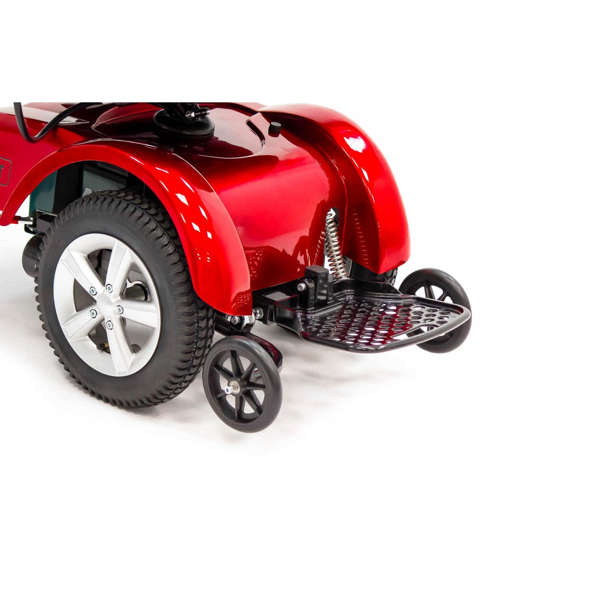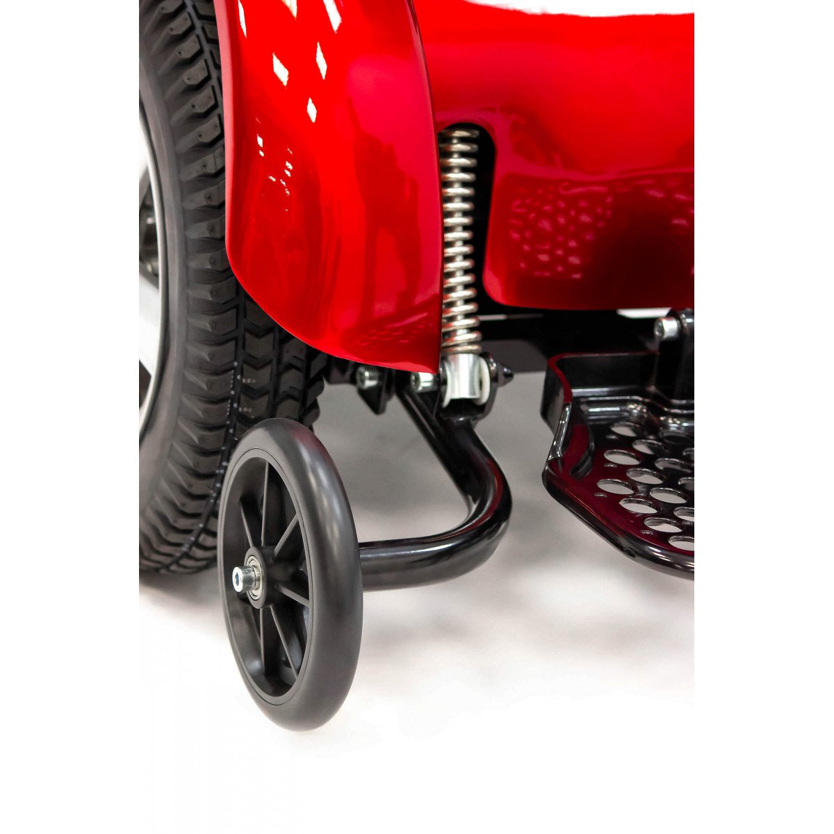 Передний привод обеспечивает минимальный радиус разворота, а дорожный просвет 10 см помогает уверенно чувствовать себя в городских условиях. Дополнительную безопасность создают подпружиненные антиопрокидные ролики.