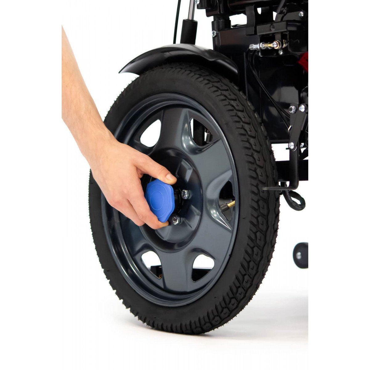 Модель оборудована системой защиты от опрокидывания и регулируемыми подножками, которые можно поднять для отдыха в горизонтальном положении. Управление простое и интуитивное — с помощью джойстика. Контроллер можно установить с любой стороны, а встроенный фонарик с USB-разъёмом позволит зарядить телефон или осветить путь в тёмное время суток.