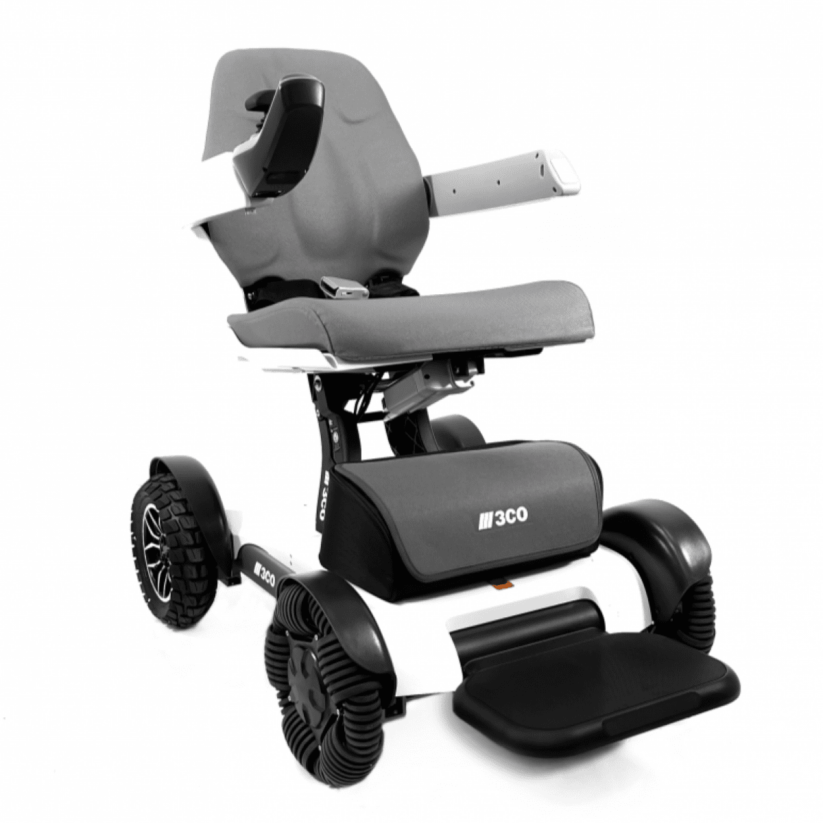 Конструкция продумана для комфорта: эргономичные подушки спинки и сиденья поддерживают правильную посадку, а откидные подлокотники и подножка упрощают пересаживание. Спинка дополнена элементами подсветки, что делает использование коляски заметнее и безопаснее в тёмное время суток. При необходимости электропривод можно отключить и использовать коляску с помощью сопровождающего.