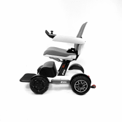 Рама выполнена из прочного алюминия с защитой от коррозии, что обеспечивает надёжность при ежедневной эксплуатации. В сложенном виде коляска занимает минимум места и помещается в багажник автомобиля. Управление осуществляется манипулятором, который можно установить под удобную руку, а через мобильное приложение доступны дополнительные функции контроля. В комплект входит зарядное устройство и всё необходимое для использования.