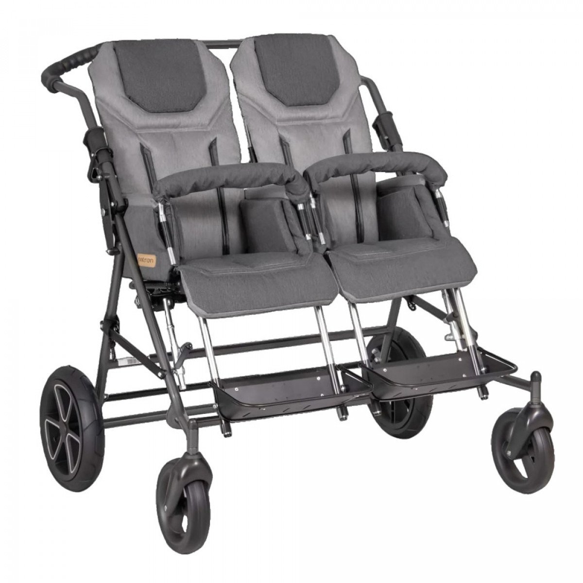 Двойное кресло Patron Tom 4 X-country Classic Duo (Патрон Том 4 Икс-Кантри Классик Дуо) предназначено для перевозки двоих детей, поэтому имеет расширенный набор возможностей. Каркас выполнен из алюминиевых профилей и отличается лёгкостью и прочностью, что облегчает использование коляски и продлевает срок её службы.