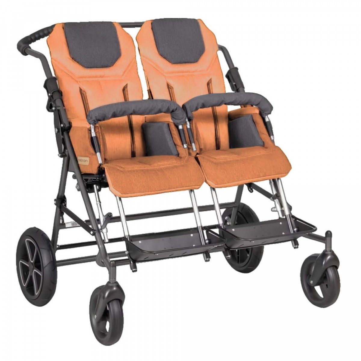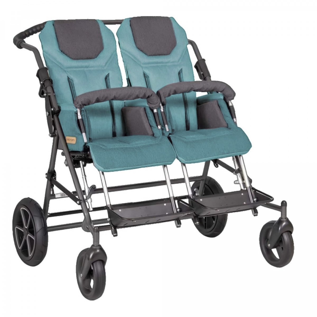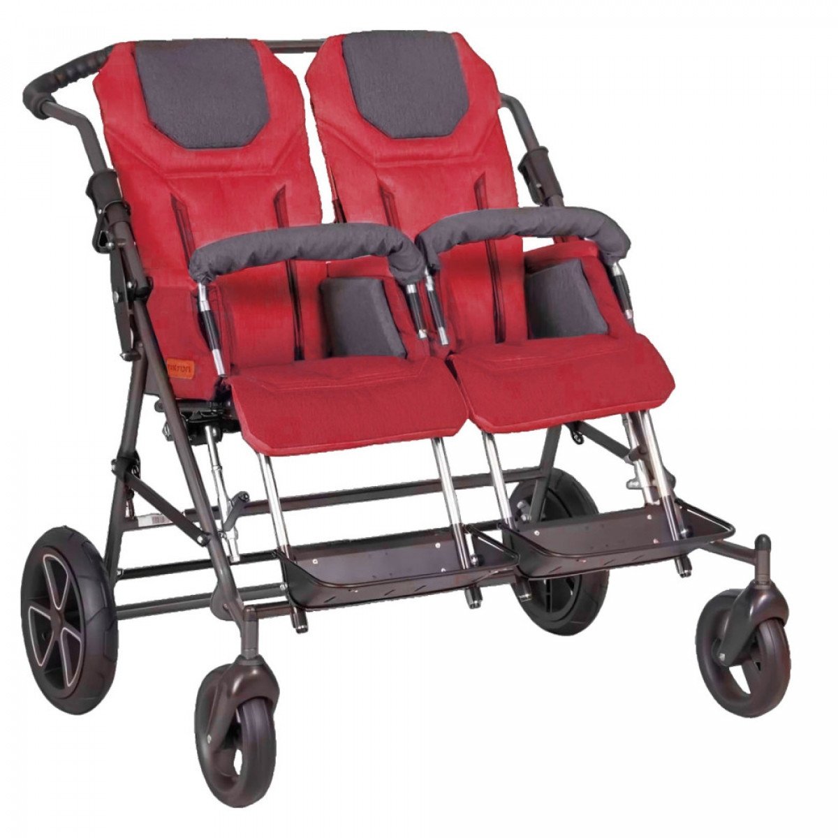 Для облегчения ухода за пользователя коляска оборудована двумя независимыми сиденьями, которые могут регулироваться и настраиваться под потребности каждого из детей. Благодаря специальной системе их можно легко снять или переставить как по ходу, так и против хода движения коляски. Сиденья защищены мягкой текстильной обивкой, которую при необходимости можно снимать, что облегчает уход за коляской и позволяет дольше сохранить её привлекательный вид.