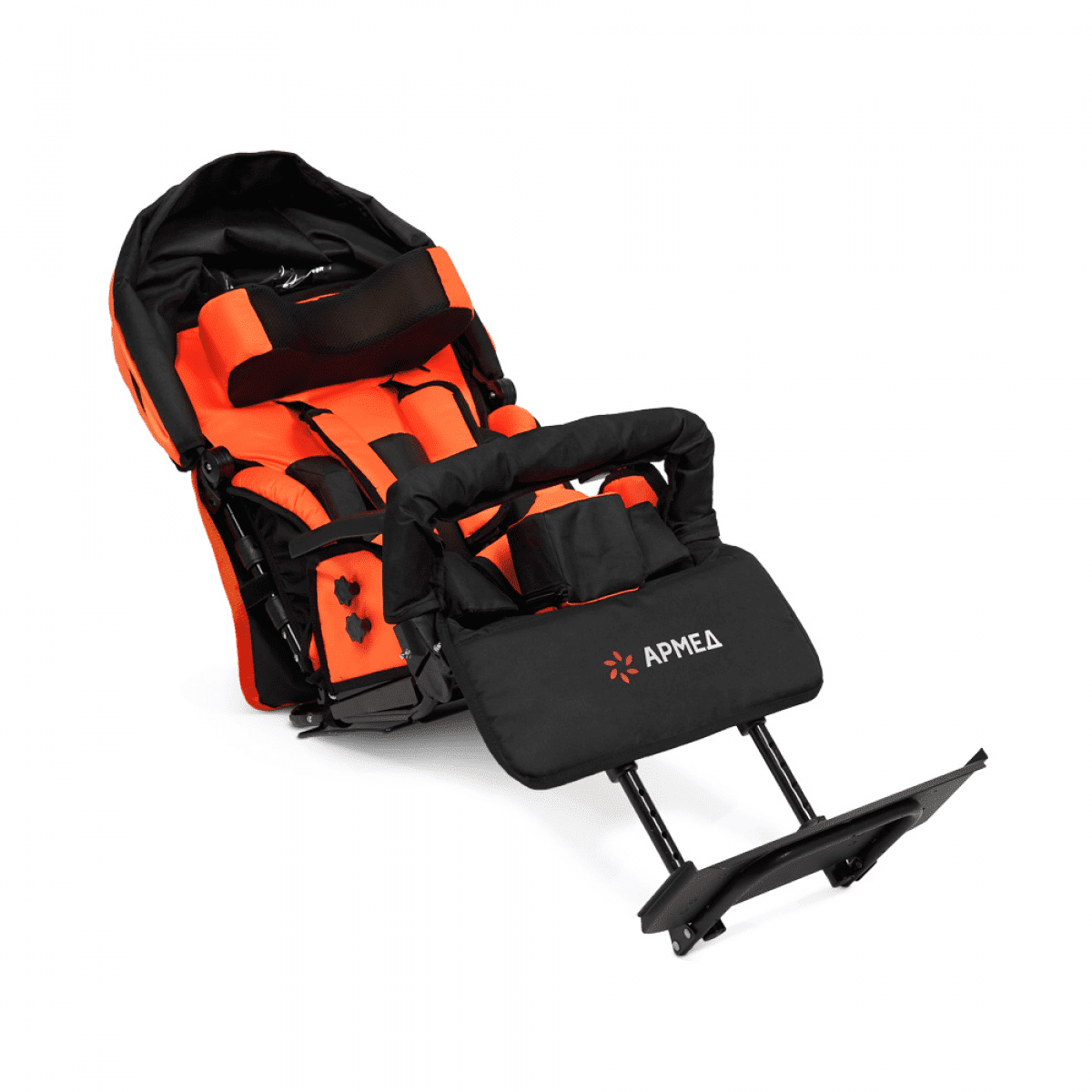 Армед Эвита Нео — современная коляска российского производства, разработанная для ежедневного ухода и прогулок с детьми с ДЦП и другими двигательными нарушениями. Она сочетает комфорт, безопасность и компактность: лёгкая складная рама, съёмные колёса и манёвренные передние колёсики упрощают хранение и транспортировку, а пневматические шины обеспечивают мягкий ход по любым дорогам.