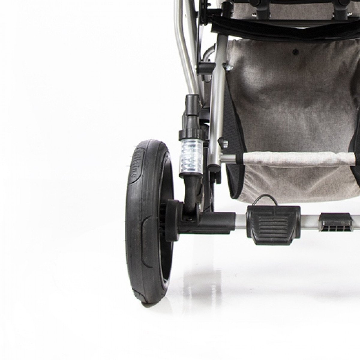 Одной из ключевых особенностей коляски Vita Buggy 7900 является широкий диапазон регулировок. Съёмное сиденье Vita Buggy 7900 можно устанавливать на раму как по направлению движения, так и против него. Это позволяет родителям или сопровождающим выбрать наиболее удобное положение для взаимодействия с ребёнком во время прогулки. Угол наклона как спинки, так и сиденья регулируется. Еще одним важным достоинством представленной модели является наличие задней подвески с амортизаторами. Это необходимо для того, чтобы обеспечить детям с ДЦП более плавное и комфортное передвижение по неровной поверхности.