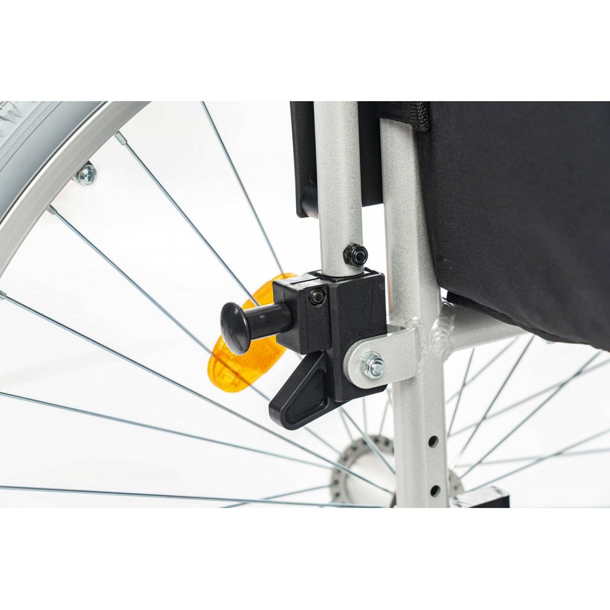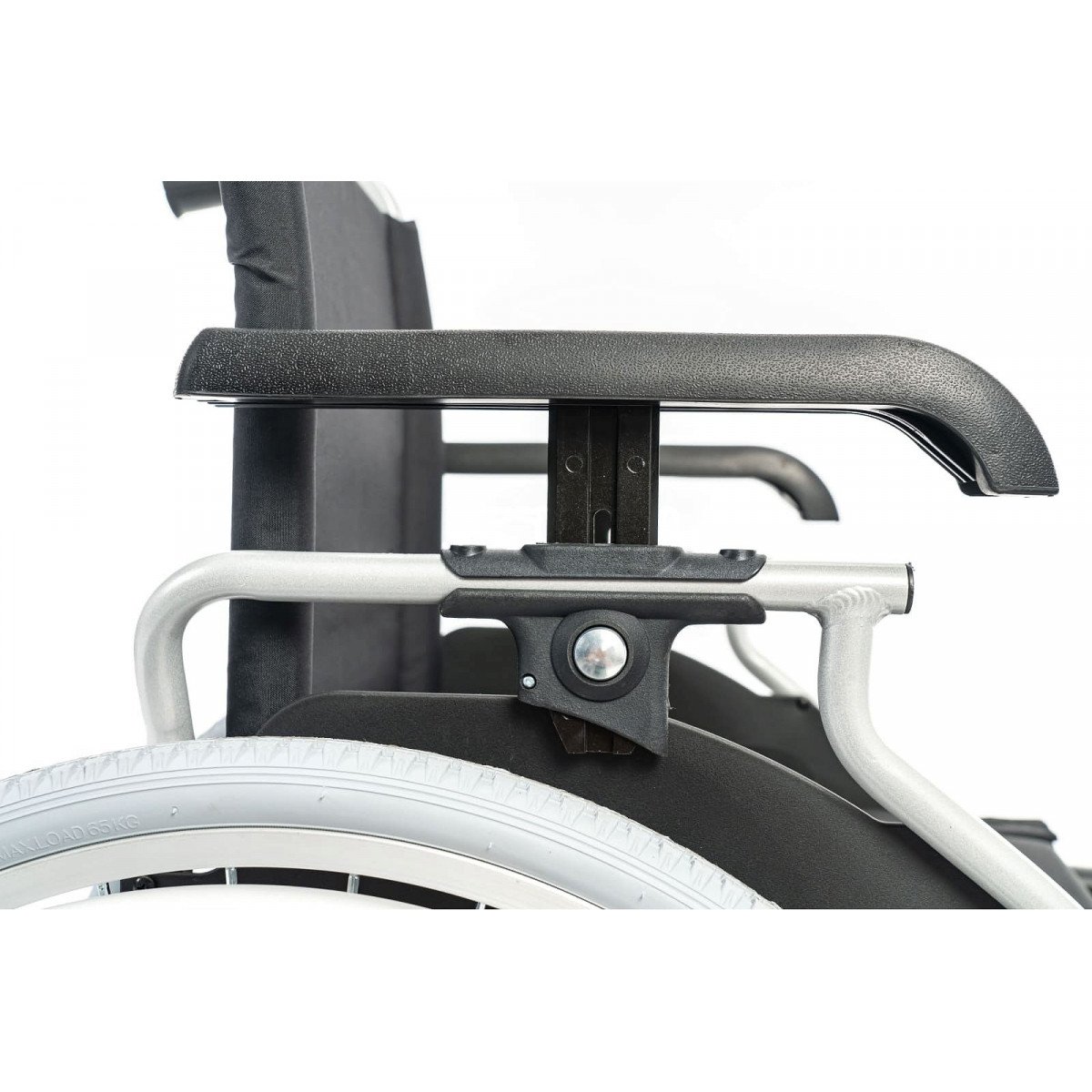 Подлокотники откидные и регулируются по высоте, что облегчает пересаживание. Поручни выполнены из цельного пенополиуретана и дополнены боковыми защитными панелями. Подножки съёмные, регулируются по высоте и углу наклона, а ремни для фиксации ног изготовлены из гипоаллергенного материала. Задние колёса оснащены быстросъёмными механизмами. В зависимости от модификации используются цельнолитые колёса для помещений или пневматические колёса для прогулок на улице.
