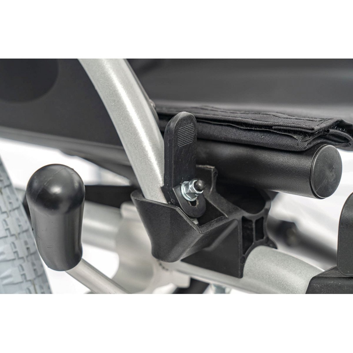 Рама изготовлена из алюминия и складывается по принципу «сторона к стороне» с помощью Х-образного механизма. Такая конструкция снижает вес коляски и облегчает её транспортировку и хранение. Сиденье выполнено из прочного нейлона с водоотталкивающими свойствами и дополнено противопролежневой подушкой со съёмным чехлом.