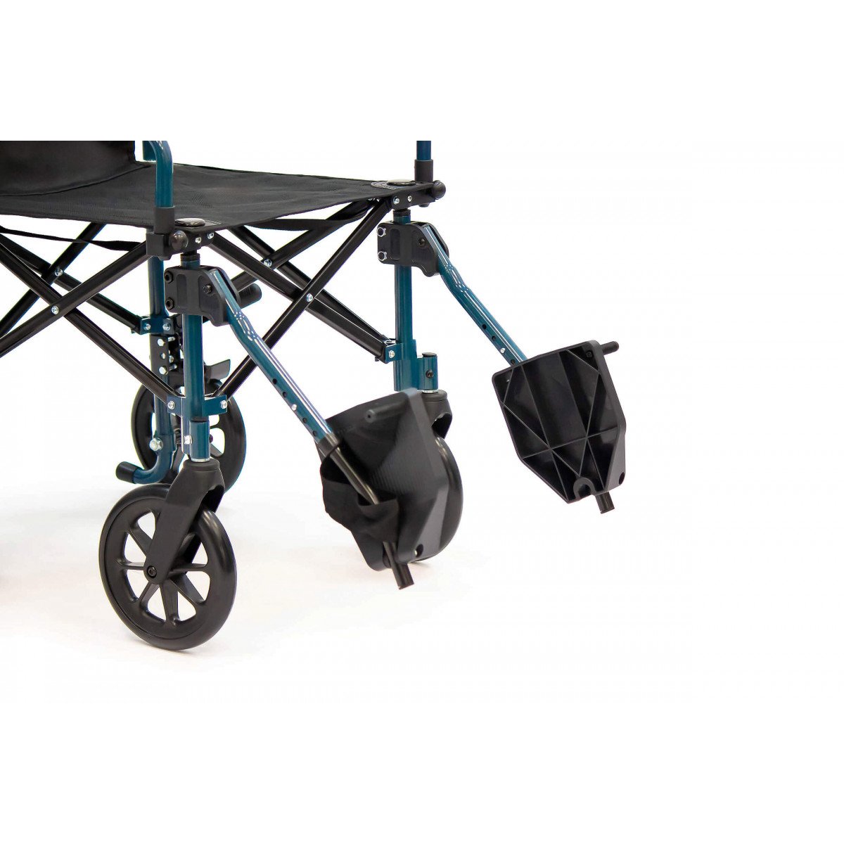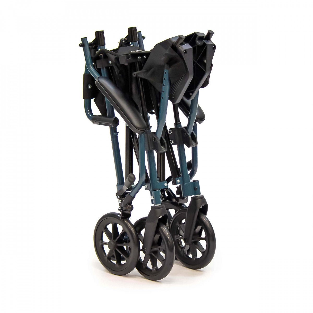 Складная рама по типу «сторона к стороне» и складывающаяся спинка позволяют быстро уменьшить габариты каталки для перевозки и хранения. Благодаря этому её удобно брать с собой в поездки, включая перелёты и поездки на общественном транспорте.