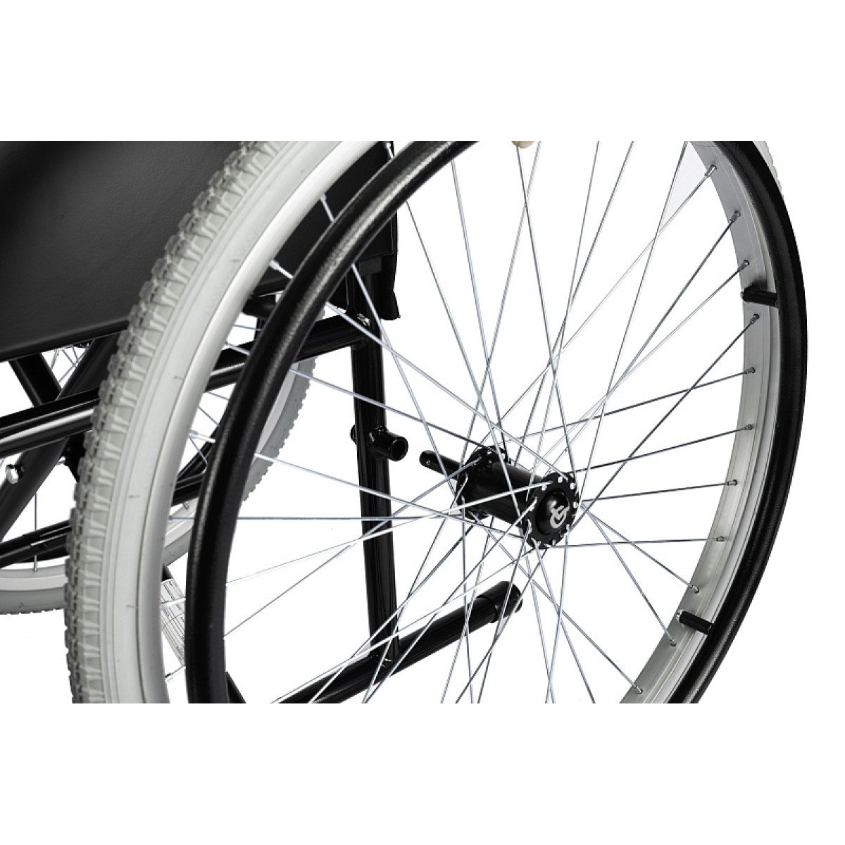 Складная рама облегчает хранение и транспортировку, а быстросъёмные задние колёса с кнопочной фиксацией позволяют быстро уменьшить габариты коляски. Передние колёса цельнолитые, устойчивы к проколам и не требуют обслуживания, задние могут быть как литыми, так и пневматическими — в зависимости от условий использования.