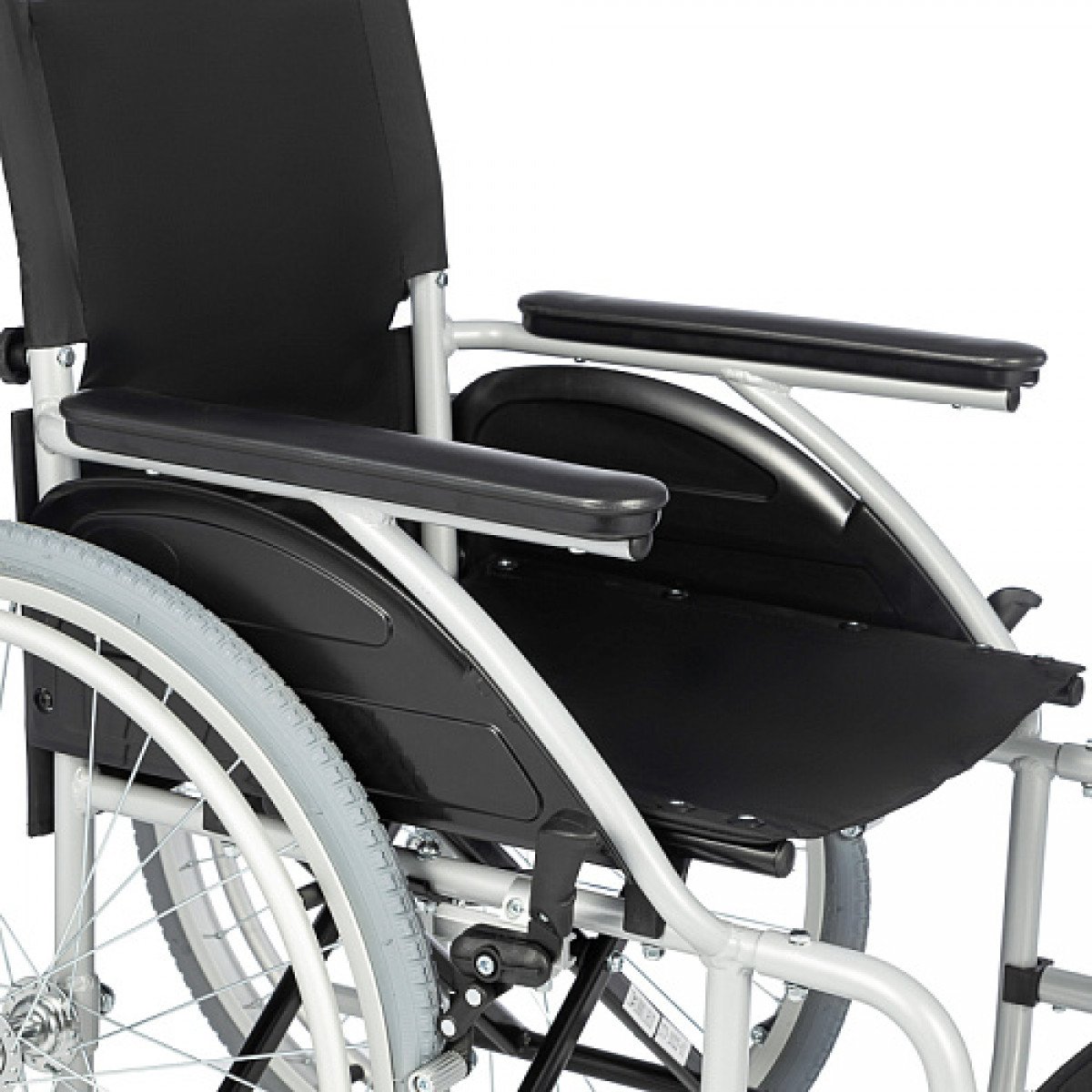 Комфорт обеспечивают мягкие подлокотники, удобное сиденье и спинка, а также регулируемые по длине подножки — можно настроить положение ног под рост пользователя.