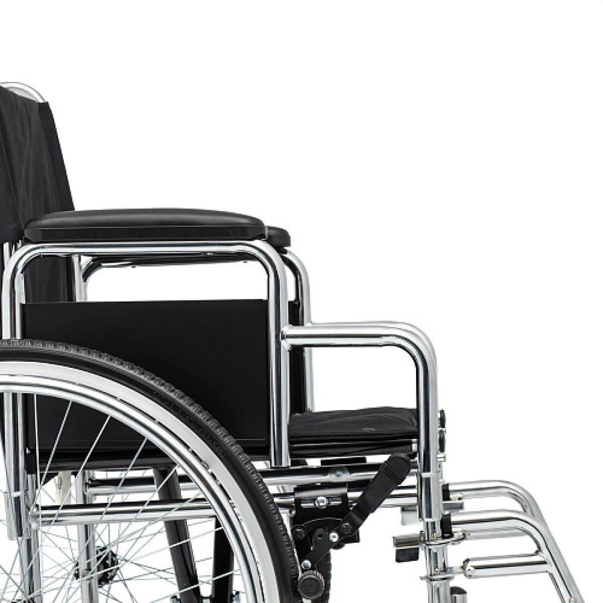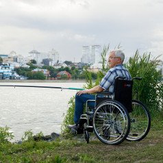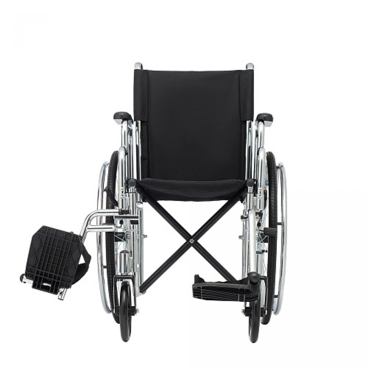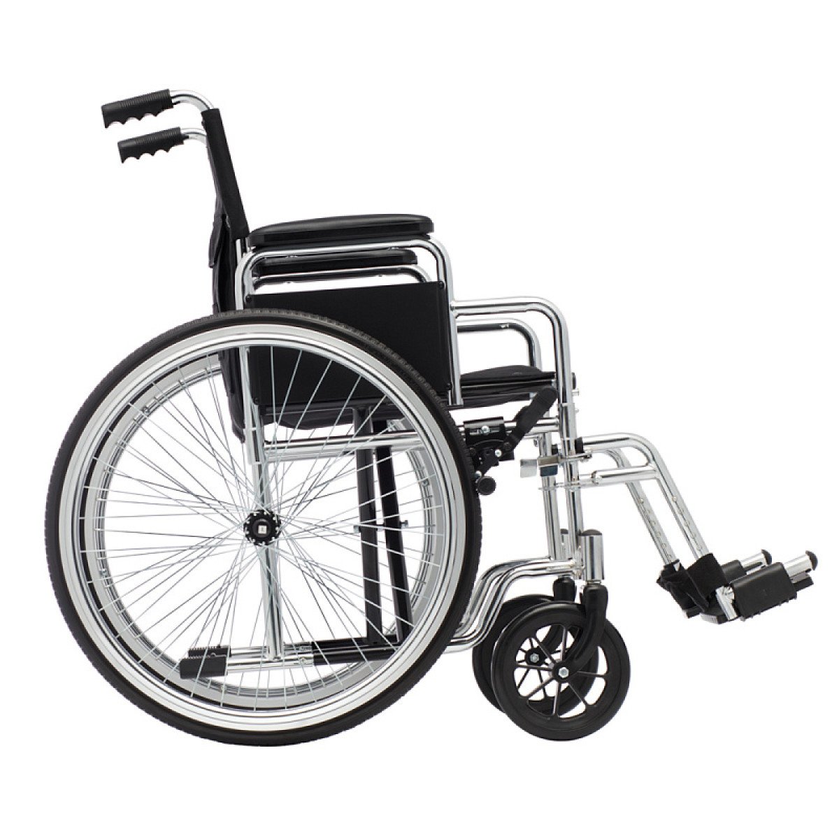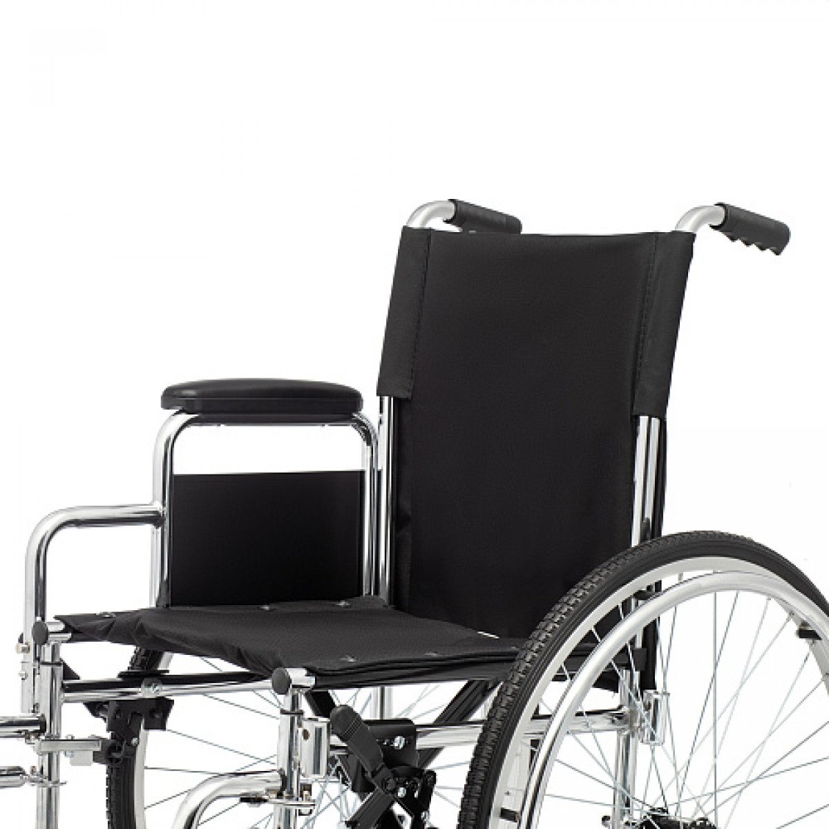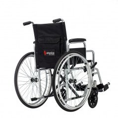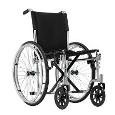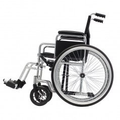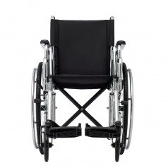 Для удобства пользователя предусмотрены съёмные подлокотники, регулируемые подножки и ручки для сопровождающего. На спинке есть карман для необходимых мелочей. Модель оптимально подходит для передвижения по ровным покрытиям и доступна в разных вариантах ширины сиденья.