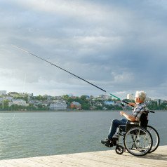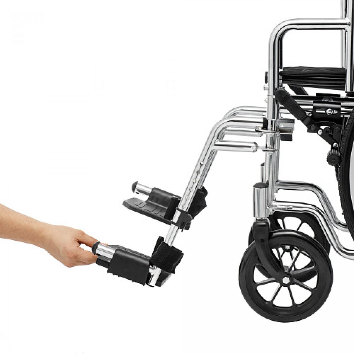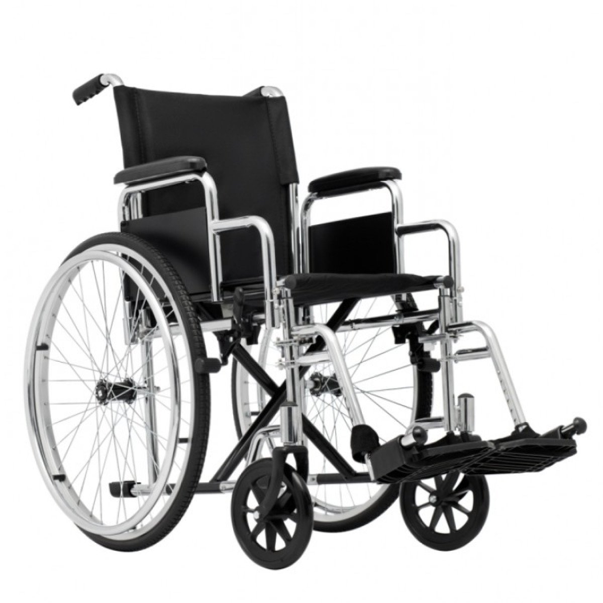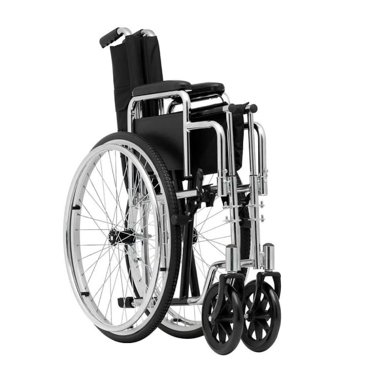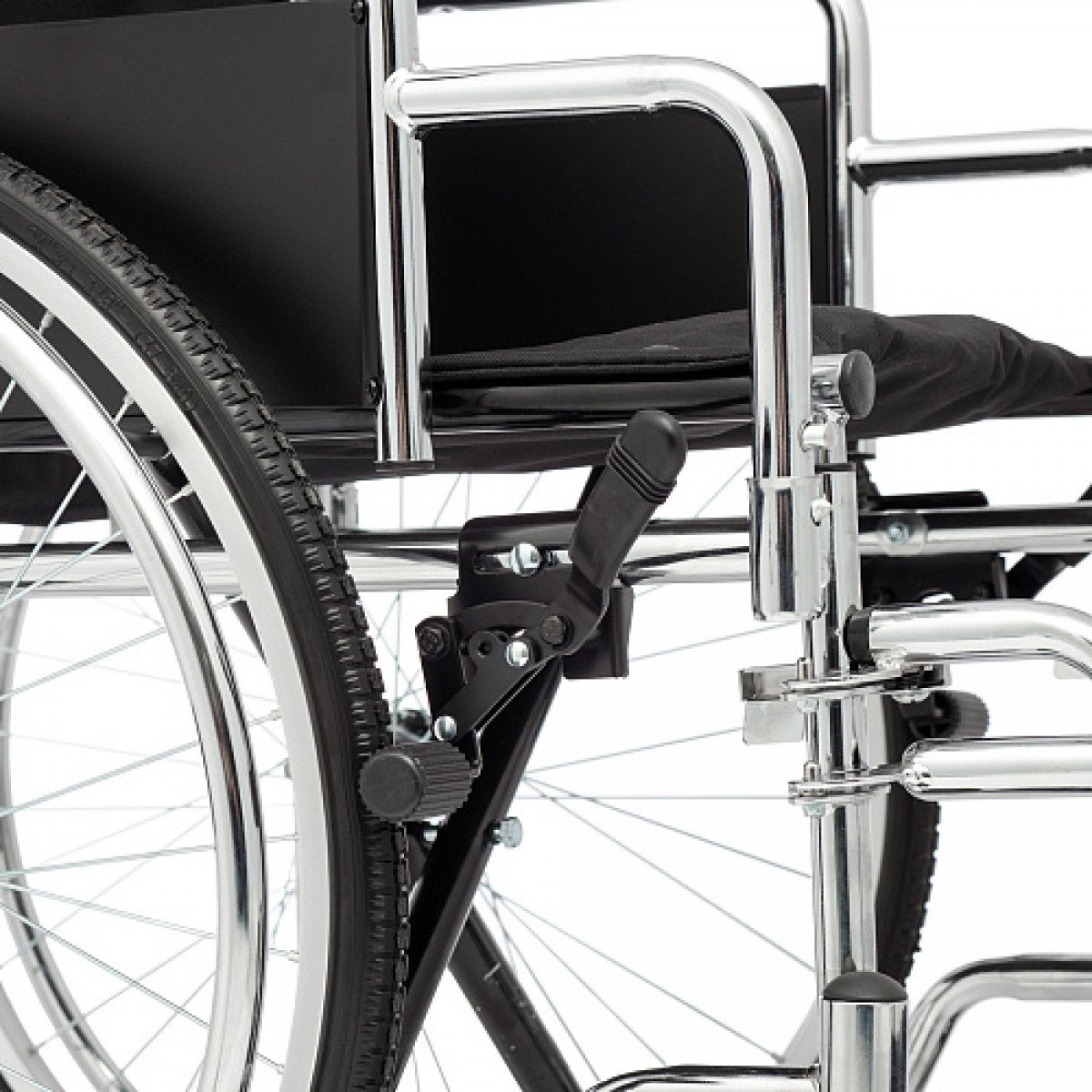 Для удобства пользователя предусмотрены съёмные подлокотники, регулируемые подножки и ручки для сопровождающего. На спинке есть карман для необходимых мелочей. Модель оптимально подходит для передвижения по ровным покрытиям и доступна в разных вариантах ширины сиденья.
