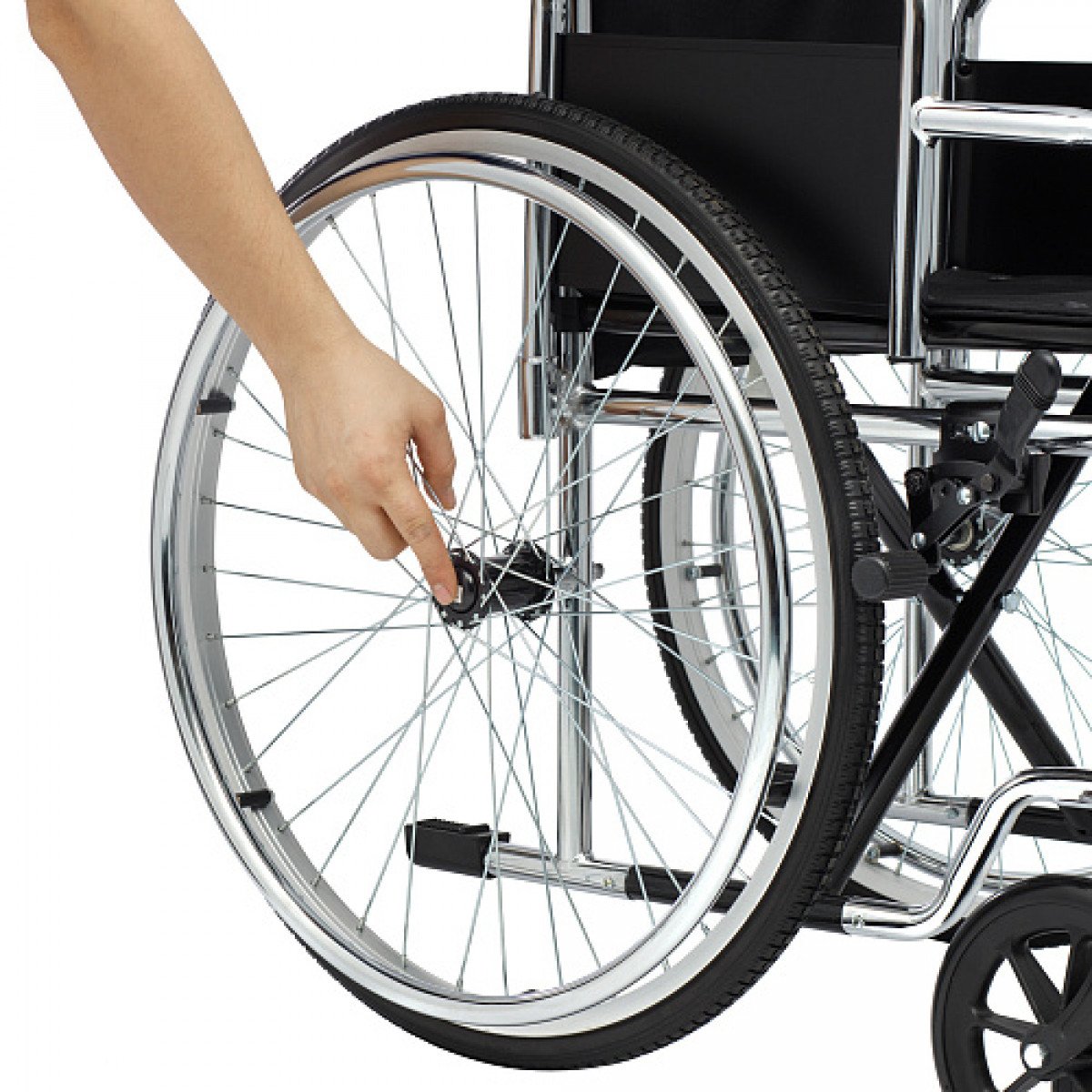 - Быстросъёмные задние колёса с кнопочной фиксацией