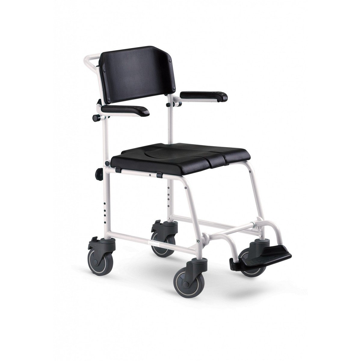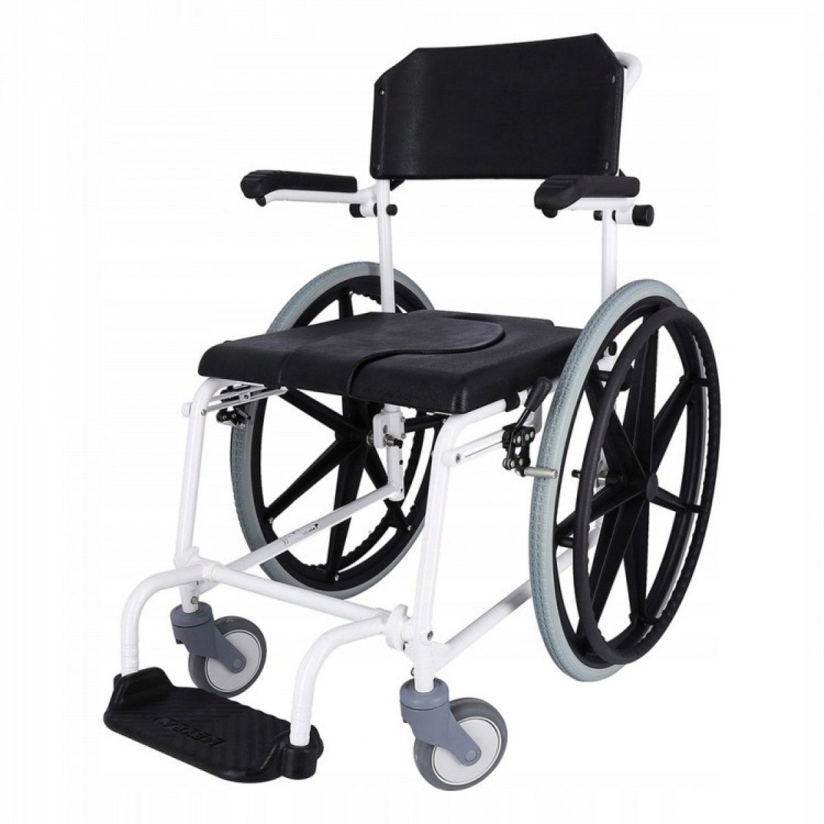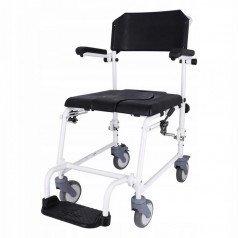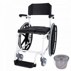 Конструкция разработана с учётом эксплуатации в помещении и вне его, обеспечивая удобство и безопасность при проведении санитарных процедур. Коляска помогает пользователю сохранять больше самостоятельности, а также облегчает работу сопровождающего персонала.
