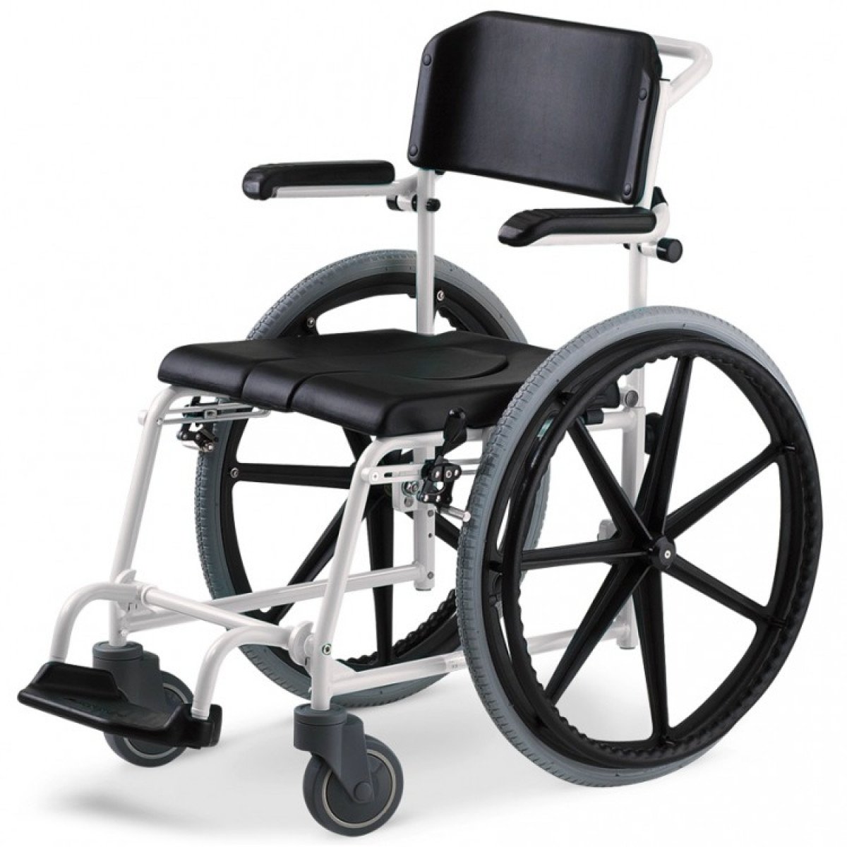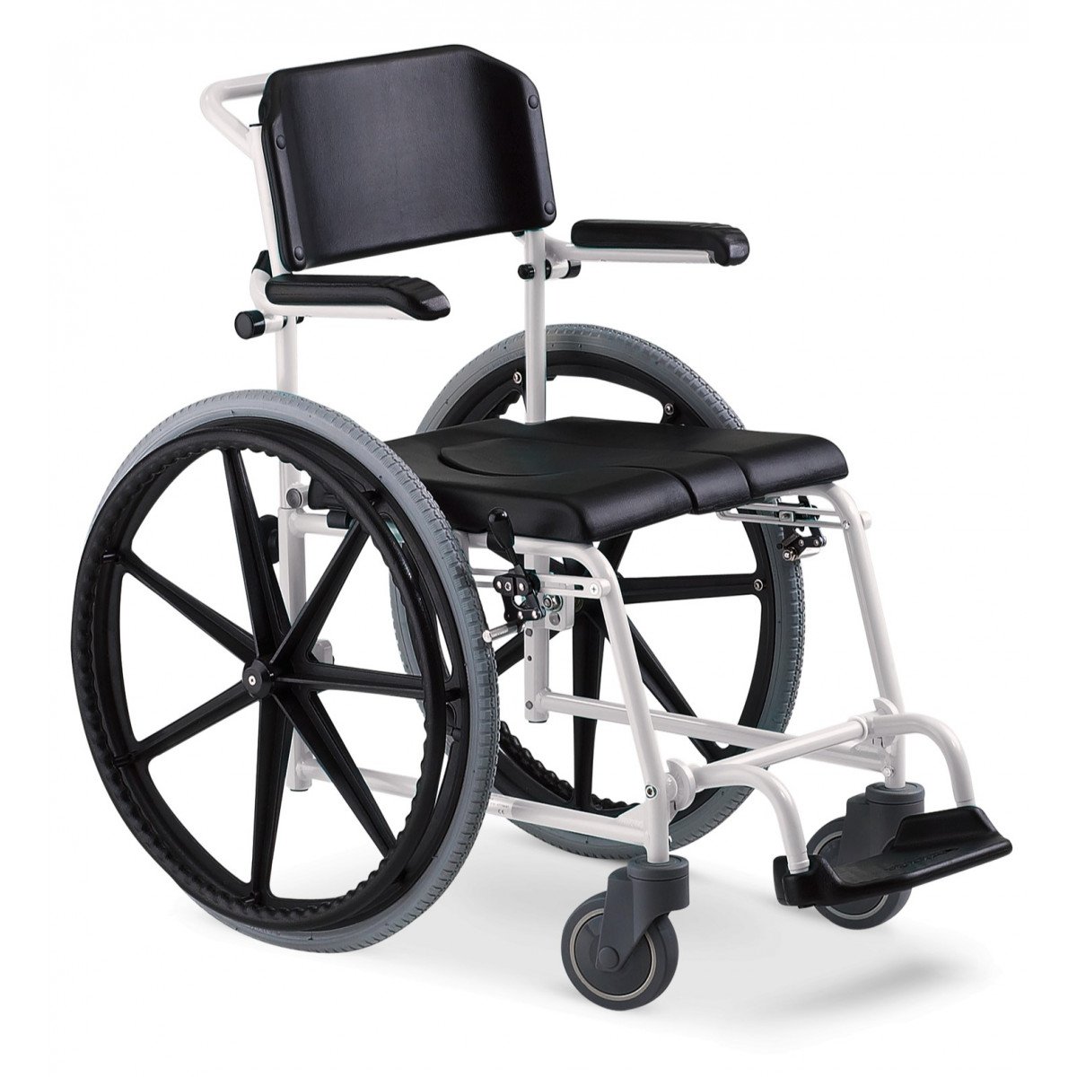 Кресло-коляска с ручным приводом Meyra McWet (Мейра ЭмСиВет) — санитарная модель, предназначенная для использования в условиях повышенной влажности, включая душевые и туалетные помещения. Подходит для людей с ограниченной подвижностью, которым требуется помощь в выполнении ежедневных гигиенических процедур как в домашних условиях, так и в медицинских учреждениях.