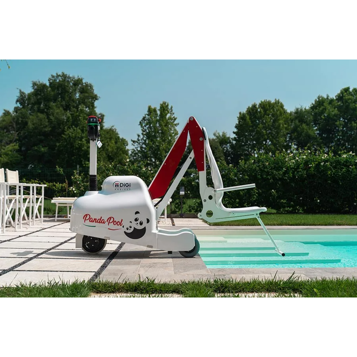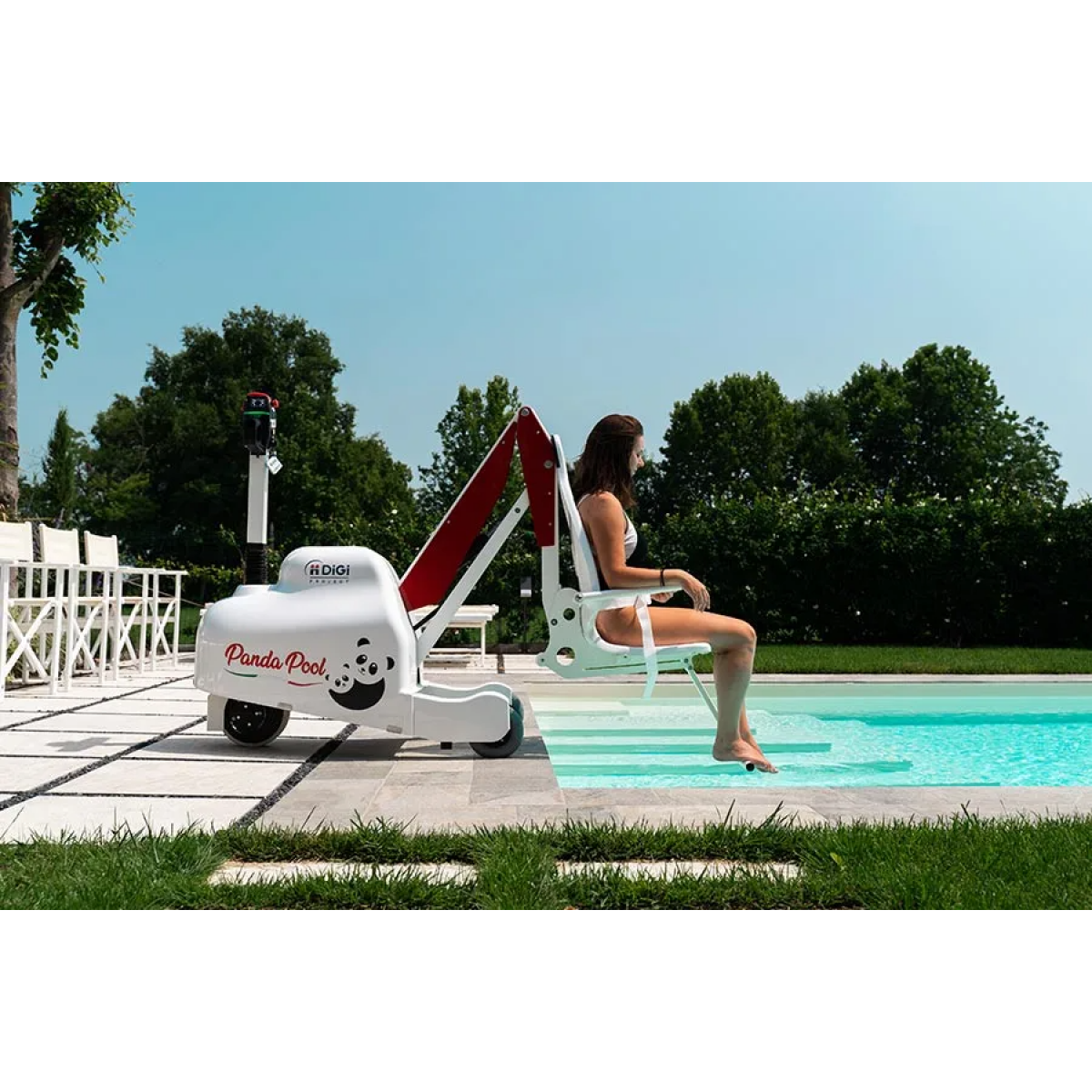 DiGi Project PandaPool (ДиДжи Проджект ПандаПул) — мобильный подъёмник для бассейнов с электроприводом, созданный для обеспечения безопасности и комфорта пользователей с ограниченной мобильностью. Он позволяет плавно и автономно перемещаться от раздевалки к воде и обратно. Благодаря интеллектуальной системе управления и восьмиуровневой защите каждое погружение становится безопасным и удобным.