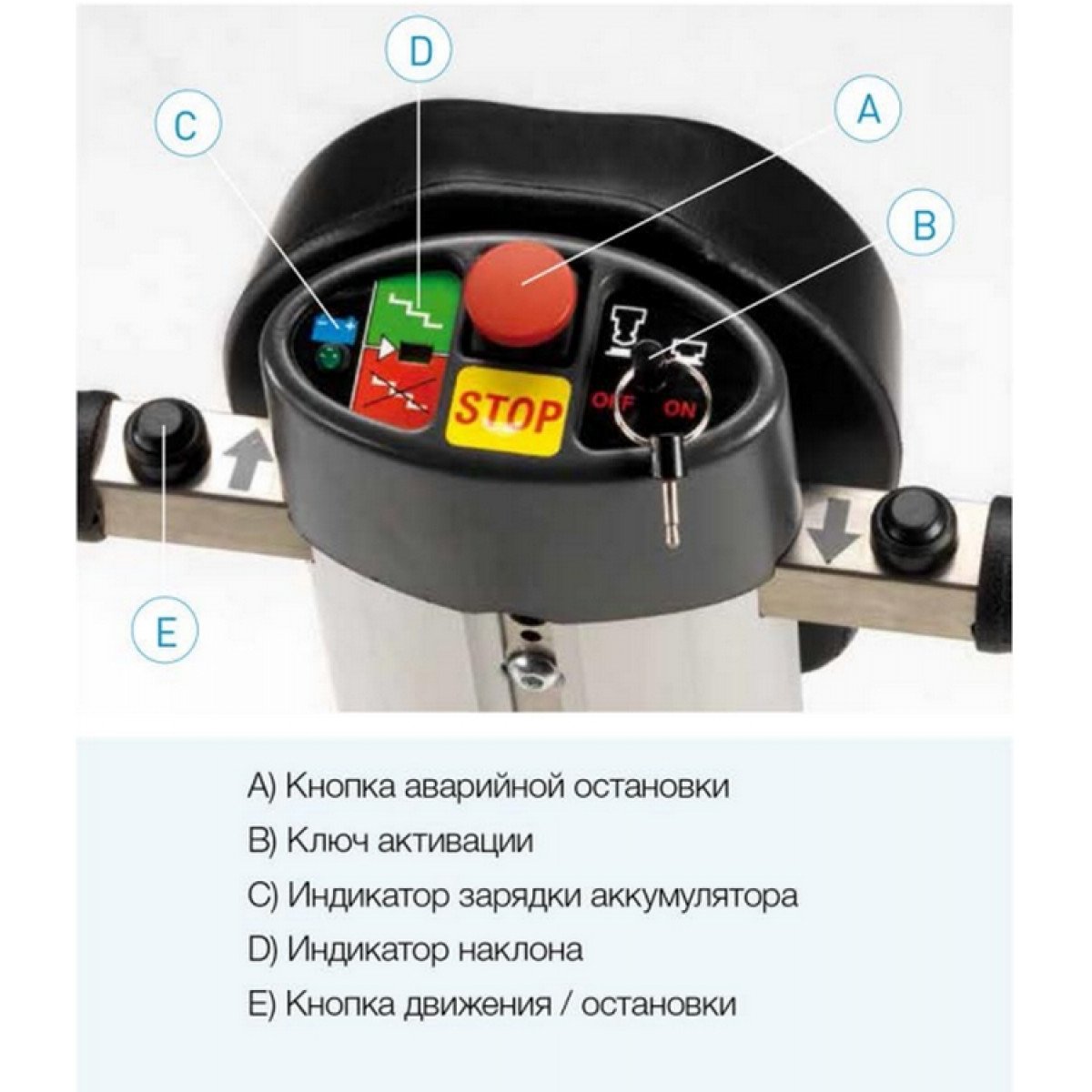 - Информативная панель управления с индикацией заряда и угла наклона