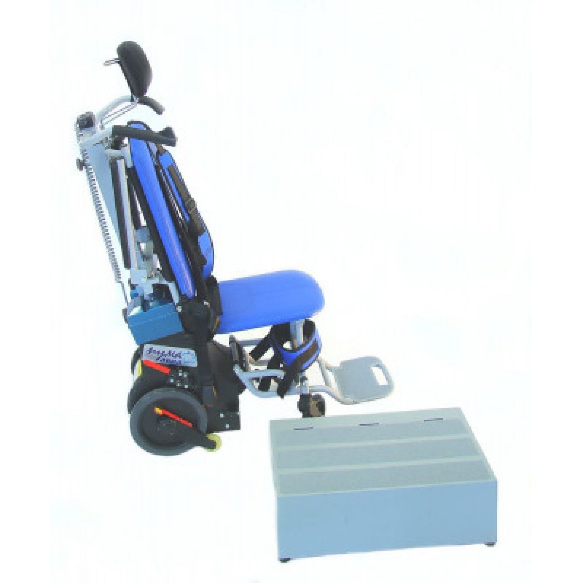 Сиденье оснащено откидными подлокотниками и ремнями безопасности, что повышает комфорт и защищенность пассажира во время подъема и спуска. Индикатор заряда аккумулятора подает сигнал, когда он достигает около 50 ступеней до полной разрядки — это позволяет правильно настроить подзарядку и избежать остановки в пути.