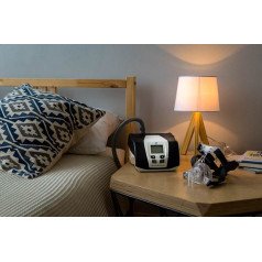 Встроенный нагреваемый увлажнитель оснащён системой Advanced Humid Control, которая контролирует температуру и влажность воздуха в реальном времени. Это помогает избежать пересыхания дыхательных путей и образования конденсата в контуре, даже при изменении температуры в комнате. Пользователь может выбрать один из десяти уровней увлажнения, чтобы подобрать наиболее комфортные условия для сна.