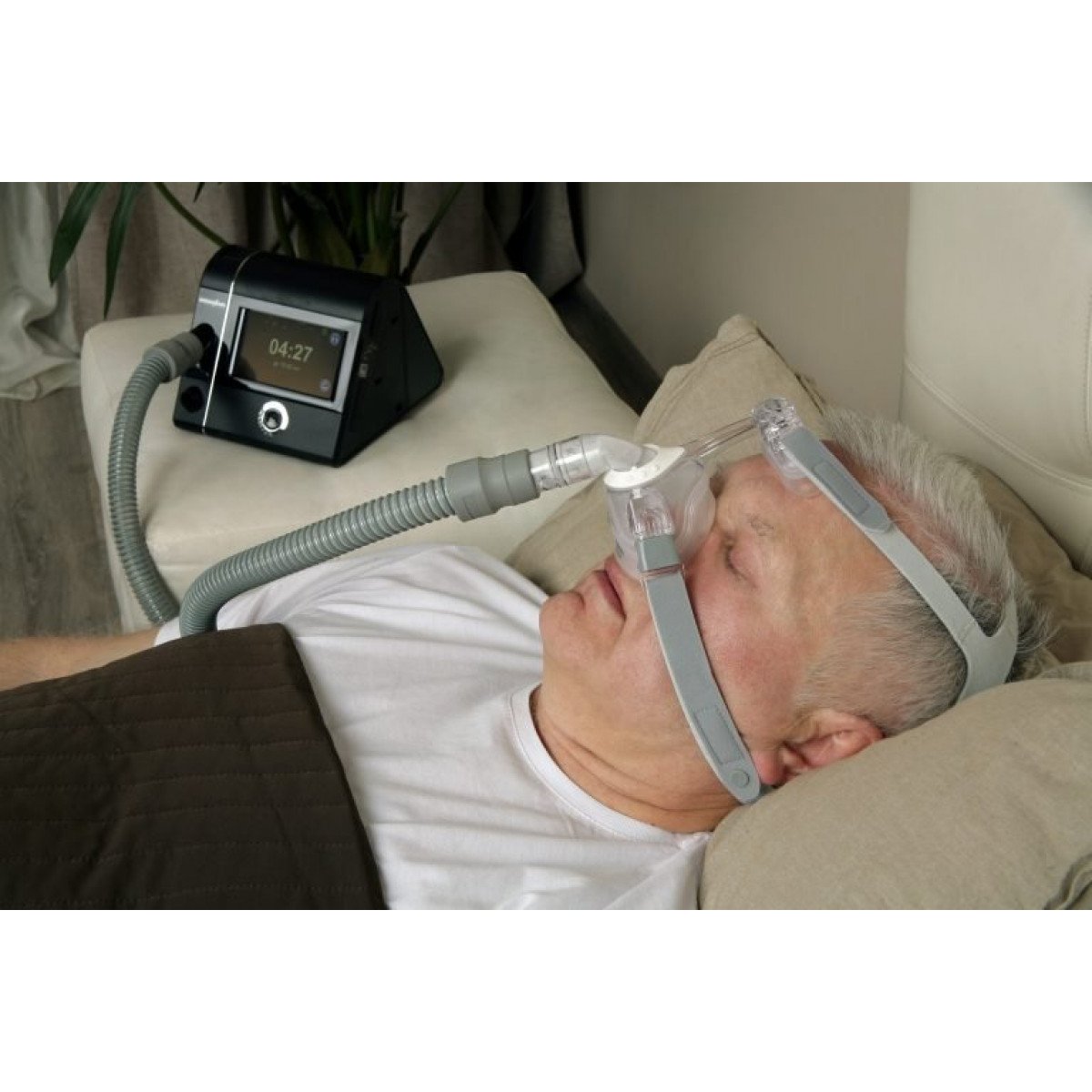 Аппарат анализирует дыхание в реальном времени и корректирует давление без необходимости ручной настройки. Интеллектуальный алгоритм определяет тип апноэ — обструктивное или центральное — и мгновенно реагирует на него, предотвращая нарушения дыхания. Prisma 20A оснащён сенсорным экраном, встроенным увлажнителем с подогревом и системой автоматического включения и выключения, что делает его использование простым и удобным.