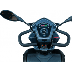 Сиденье вращается, оснащено анатомической спинкой, регулируемой по углу наклона, и съёмным подголовником. Подлокотники откидываются и фиксируются в нужном положении. Рулевая колонка регулируется по наклону, а также оснащена встроенными держателями для бутылок. Эти настройки позволяют точно подстроить скутер под индивидуальные потребности пользователя.