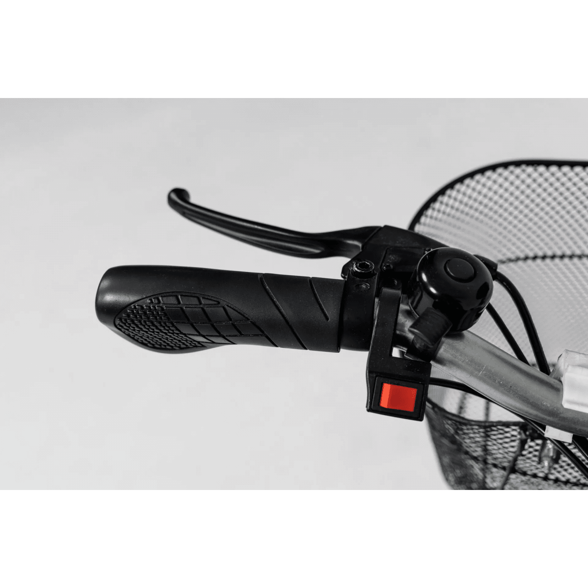 Управление интуитивно понятное: на рулевой колонке расположены дисплей и кнопки, поворотное кольцо для контроля движения, переключение направления вперёд и назад, а также рычаг дискового тормоза. Мотор-колесо обеспечивает уверенное движение, а задние колёса добавляют устойчивости. Все элементы конструкции продуманы так, чтобы скутером было удобно пользоваться каждый день — без лишних усилий и сложных настроек.