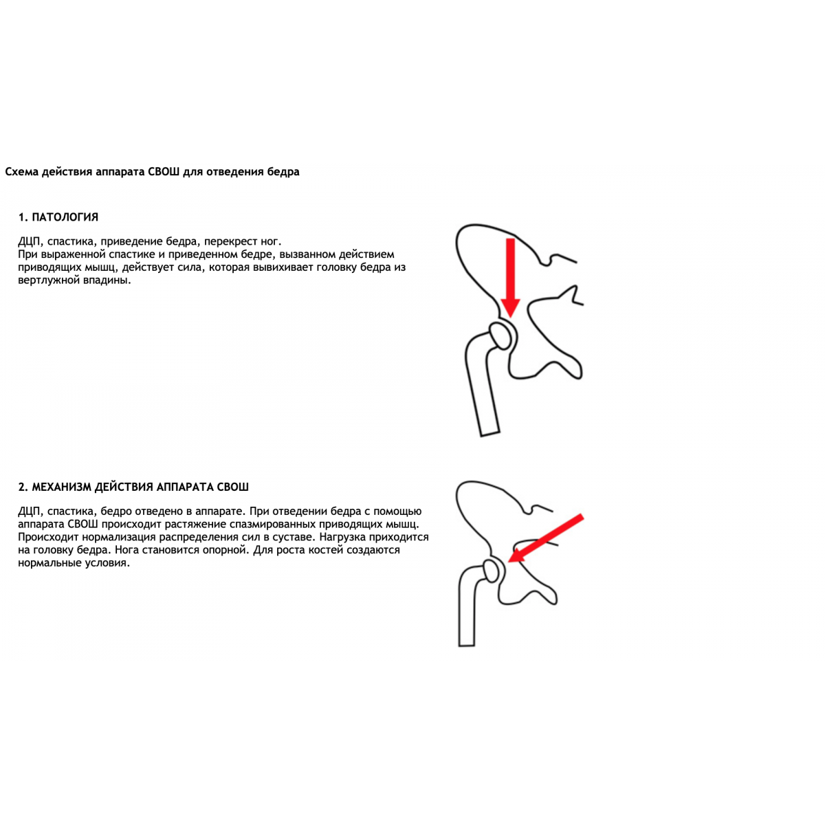 Конструкция Allard Int Swash Steady разработана с учётом естественной биомеханики: шарниры повторяют движения тазобедренных суставов, а амплитуда настраивается индивидуально под ребёнка. Аппарат снижает гипертонус приводящих мышц, способствует отведению бёдер, выпрямлению туловища и разгибанию коленей. За счёт этого повышается устойчивость в положении стоя и сидя, уменьшается нагрузка на суставы и снижается риск подвывиха бедра.