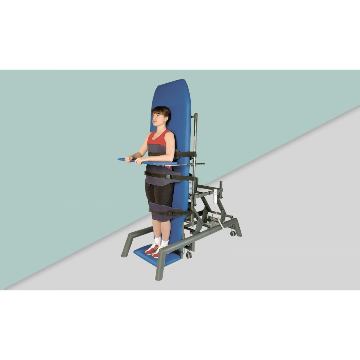 Вертикализатор Azuryt продуман для ежедневной профессиональной эксплуатации. Модель может дополнительно оснащаться колёсами для удобного перемещения, столиком для проведения процедур и ремнями безопасности для надёжной фиксации пациента во время вертикализации. Надёжность, стабильность и комфорт пользователя — ключевые преимущества этой модели.