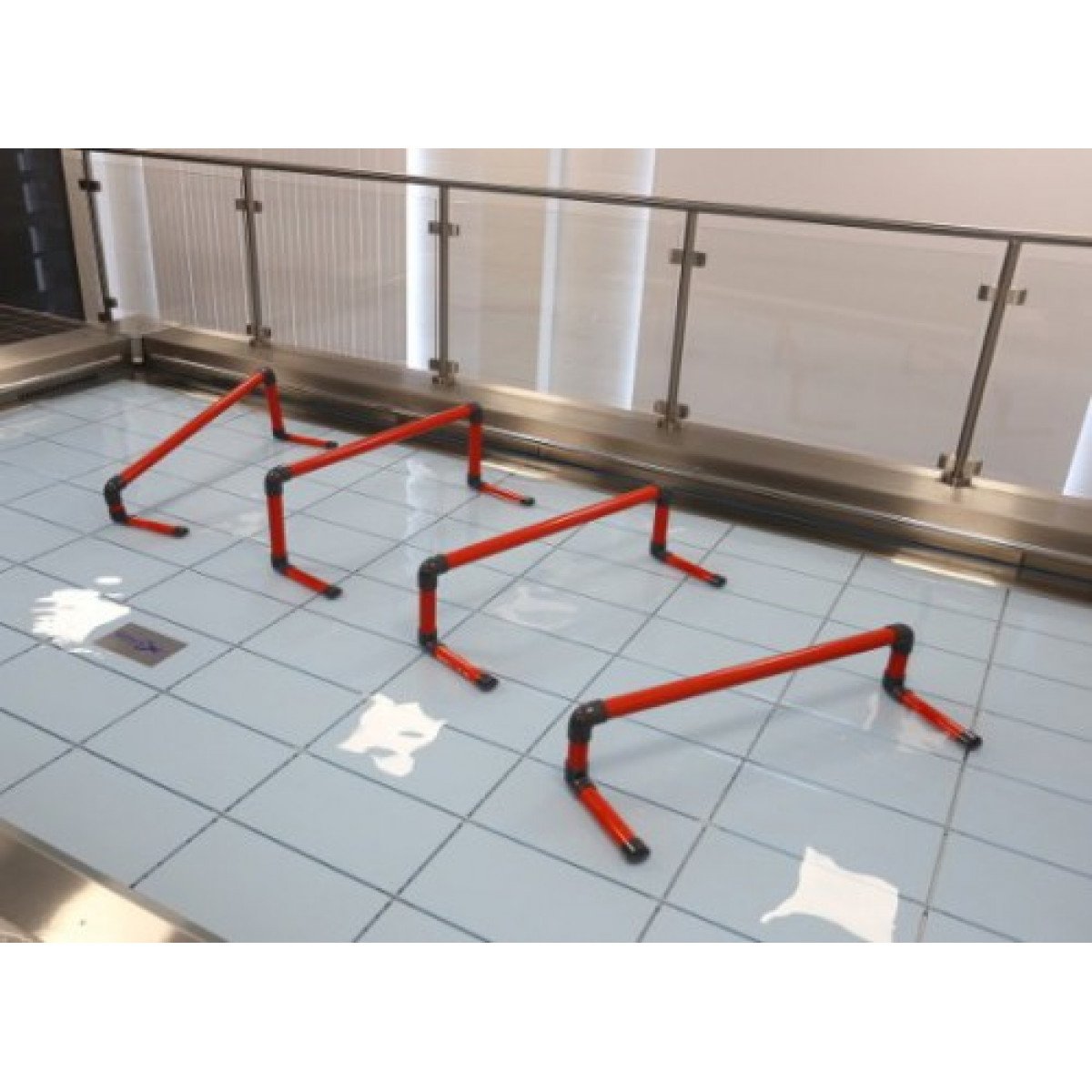 Барьеры имеют ширину 1 метр и выпускаются в трёх размерах с разной высотой, что позволяет постепенно увеличивать сложность упражнений. Их можно устанавливать как вертикально, так и под наклоном. Если барьер случайно падает, он автоматически возвращается в исходное положение благодаря плавучей горизонтальной планке, что делает тренировку безопасной и удобной.