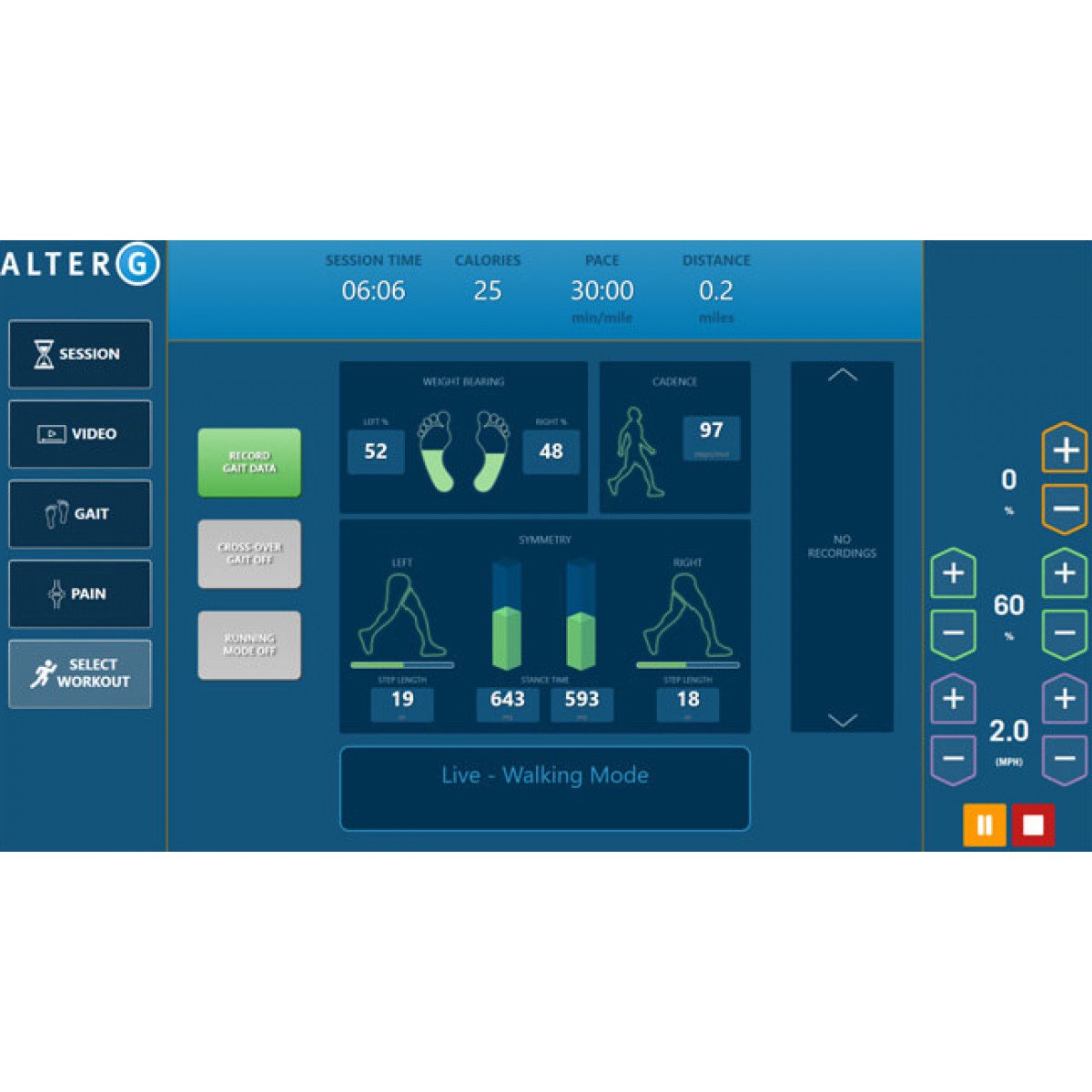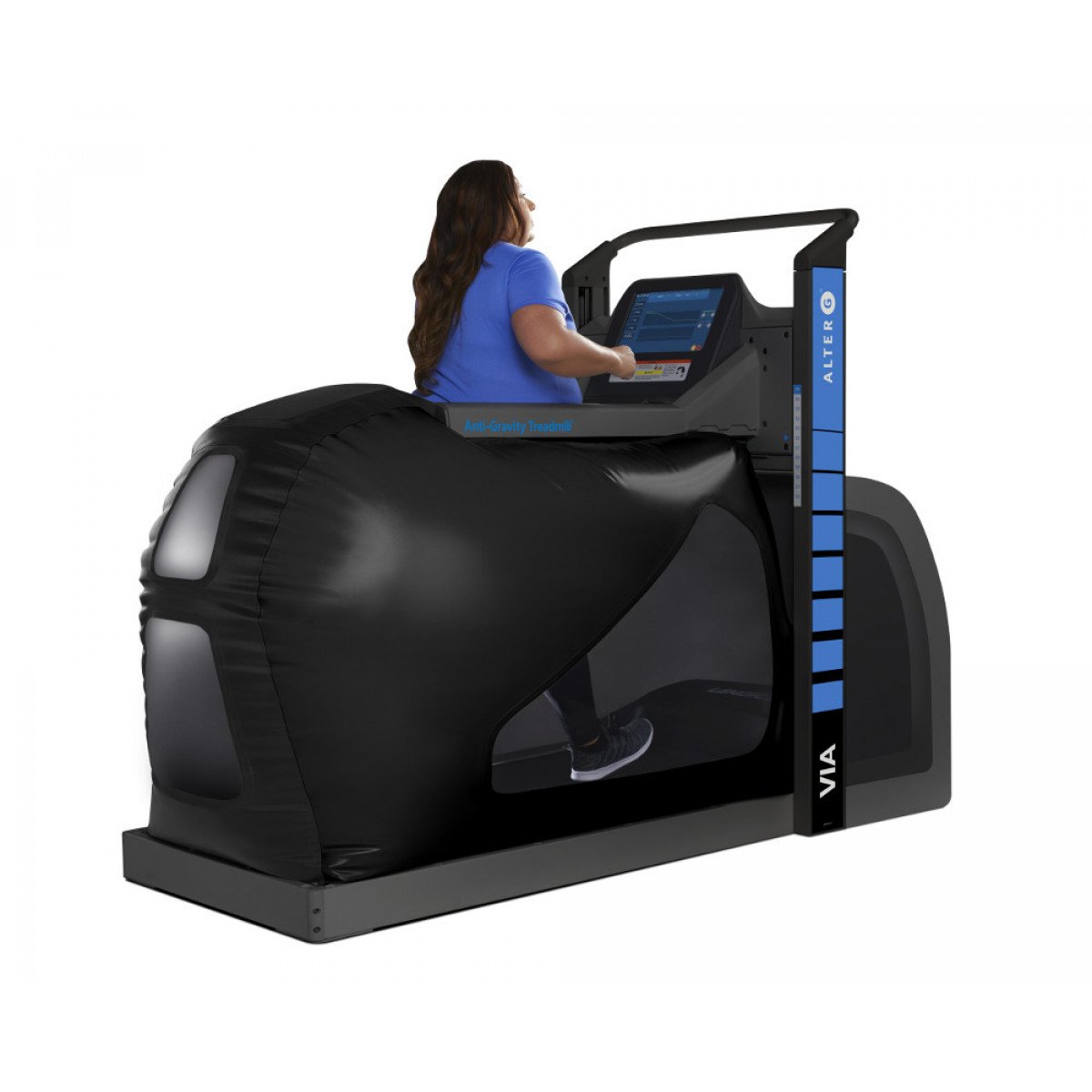 Основные характеристики включают систему видеомониторинга, которая обеспечивает обратную видеосвязь и помогает оценить и скорректировать походку пациента в реальном времени. Дорожка поддерживает физиологически правильный паттерн ходьбы и бега, обеспечивая комфорт и безопасность. В комплект поставки входят специальные шорты для антигравитационной тренировки (8 размеров) и коврик для гашения вибраций. Тренажёр использует дифференциальное давление воздуха для безопасной и эффективной разгрузочной терапии.