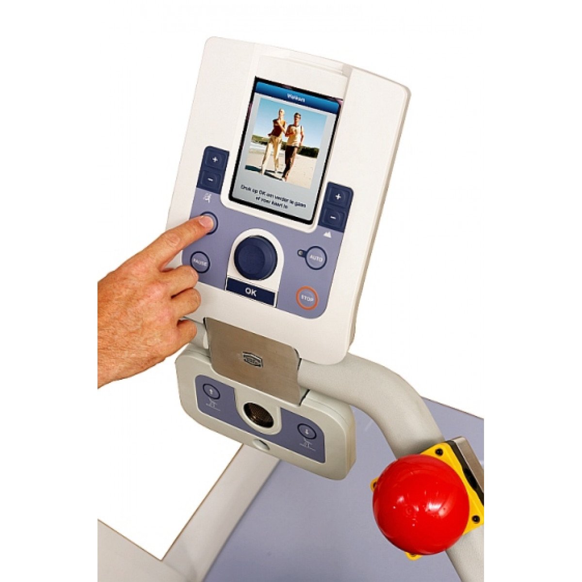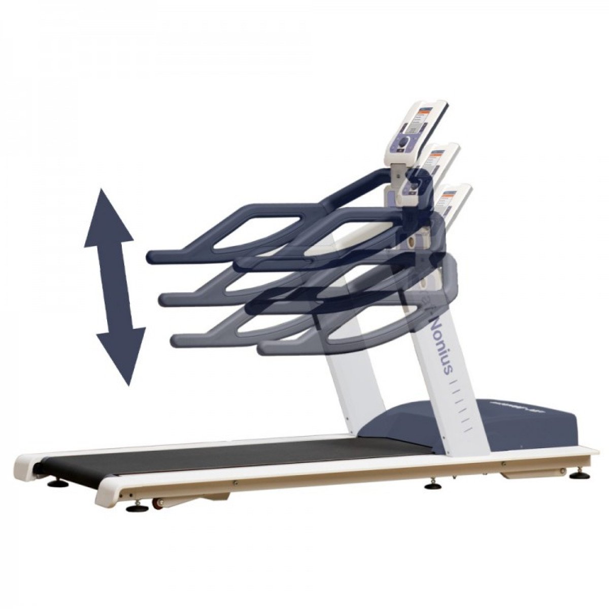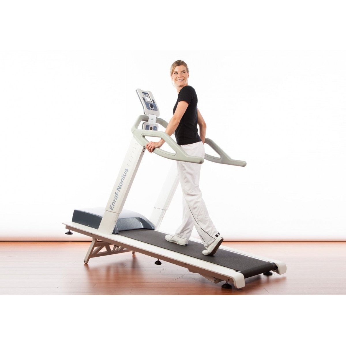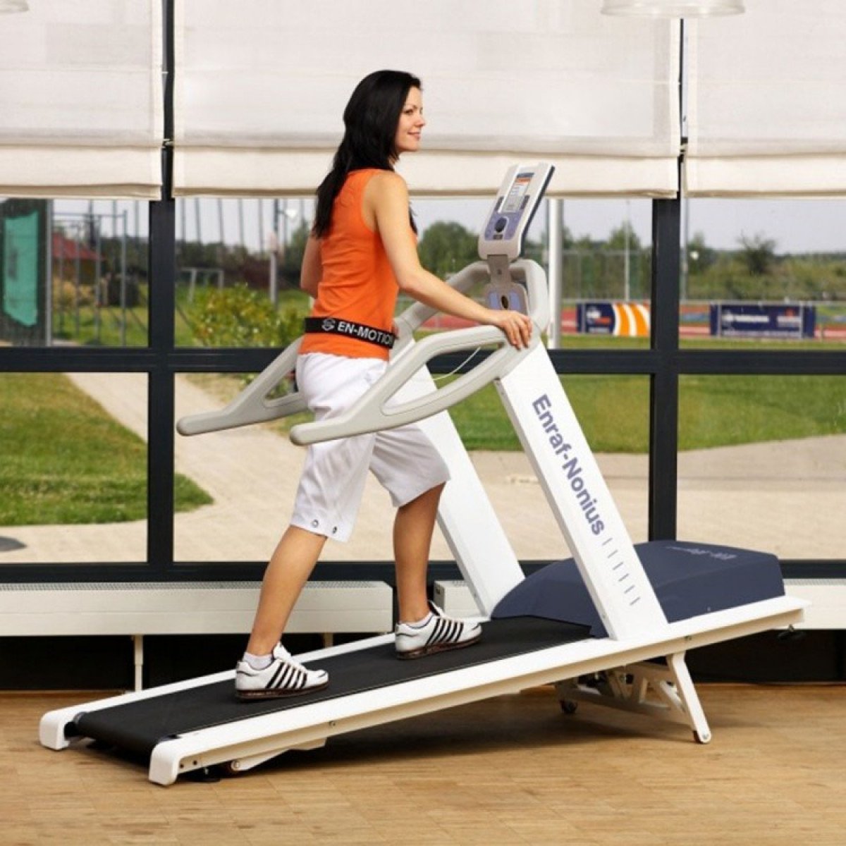 Реабилитационная беговая дорожка Enraf-Nonius Motion (Энаф-Нониус Моушн) предназначена для кинезотерапии и профилактики различных заболеваний, таких как кардиоваскулярные нарушения, диабет и остеопороз. Тренажёр регулирует скорость бегового полотна в зависимости от состояния пациента, автоматически останавливая его в случае сдвига и опасности падения. При возвращении пациента в правильное положение движение возобновляется. Пандус и поручни обеспечивают дополнительную безопасность для малоподвижных пациентов.